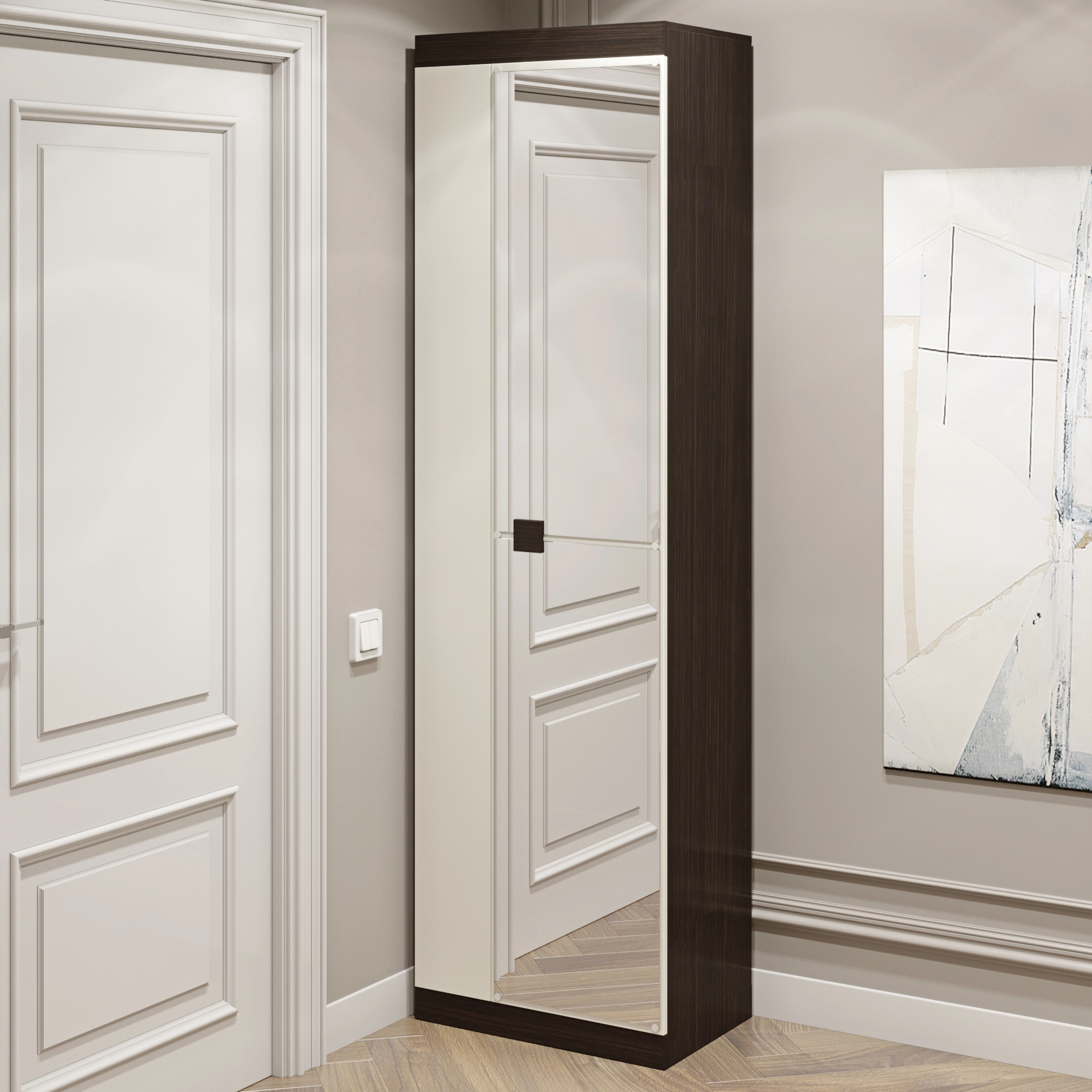 Шафа розпашна Еверест Соната-600 з дзеркалом венге темний + білий (DTM-2635)