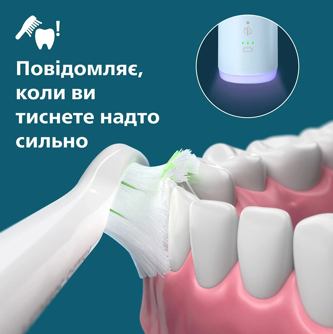 - Дополнительные функции Ергономічний дизайн; технологія Sonicare; таймер; індикатор стану акумулятора; датчик сили натисканн