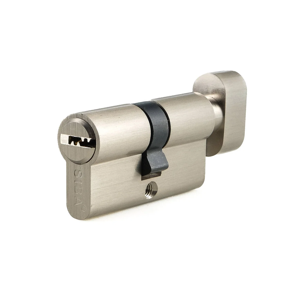 Цилиндр SIBA длиной 60 мм в исполнении 30/30T — практичное компактное решение для дверей стандартной толщины. Формат «ключ–поворот» обеспечивает удобство эксплуатации: с одной стороны используется ключ, а с внутренней — поворотная ручка. Матовое никелевое покрытие придаёт аккуратный внешний вид и отличается стойкостью к износу и мелким повреждениям. Механизм работает плавно и надёжно, гарантируя длительный срок службы.