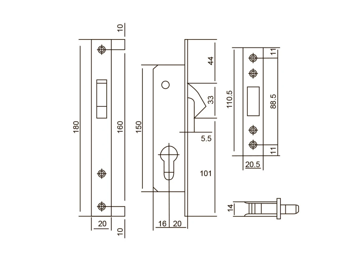 | Простая защёлка для раздвижных дверей | Без цилиндра и замка | Быстрое закрывание, минимальная защита |