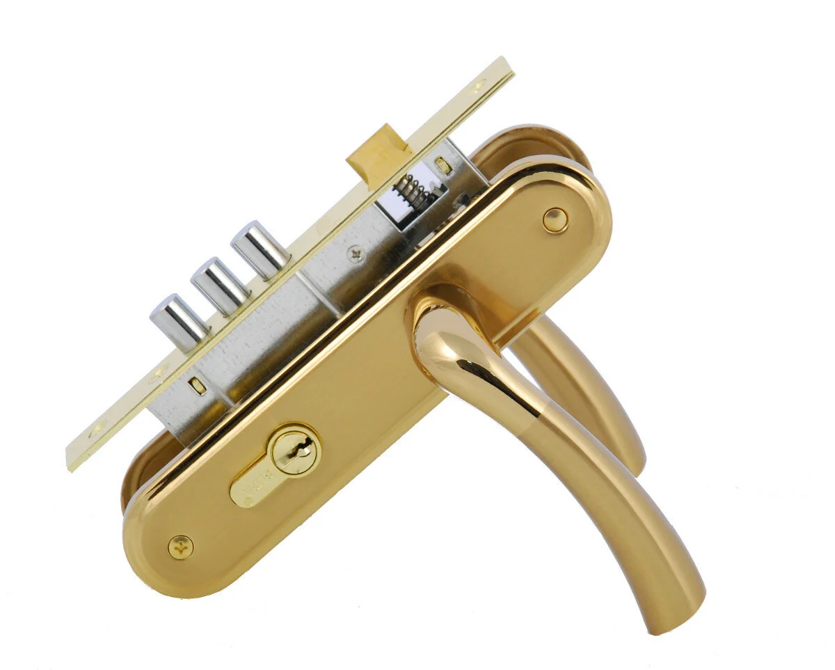 Комплект замка SIBA SAROS 62 мм (замок+цилиндр+ручки) Матовое золото\Золото