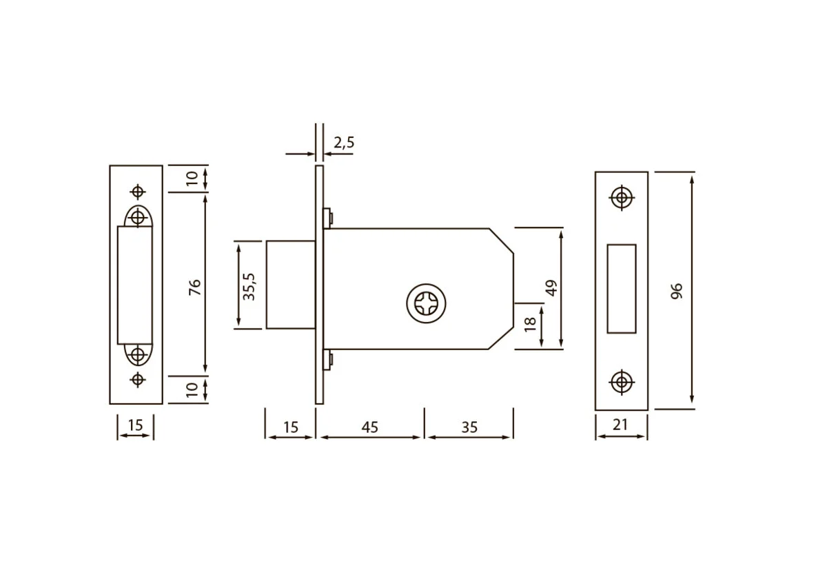 Подходит для установки на деревянные, металлические и комбинированные двери. Совместим с различными ручками, накладками и ответными планками. Универсальный дизайн позволяет использовать замок в любых интерьерах.