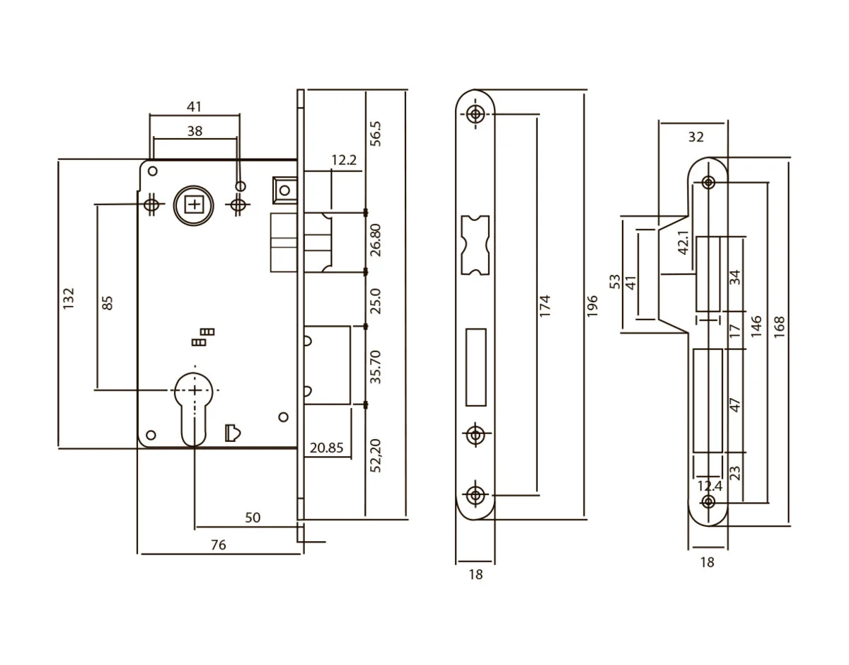 - Стандарт 85/50 мм — совместимость с типовыми ручками.