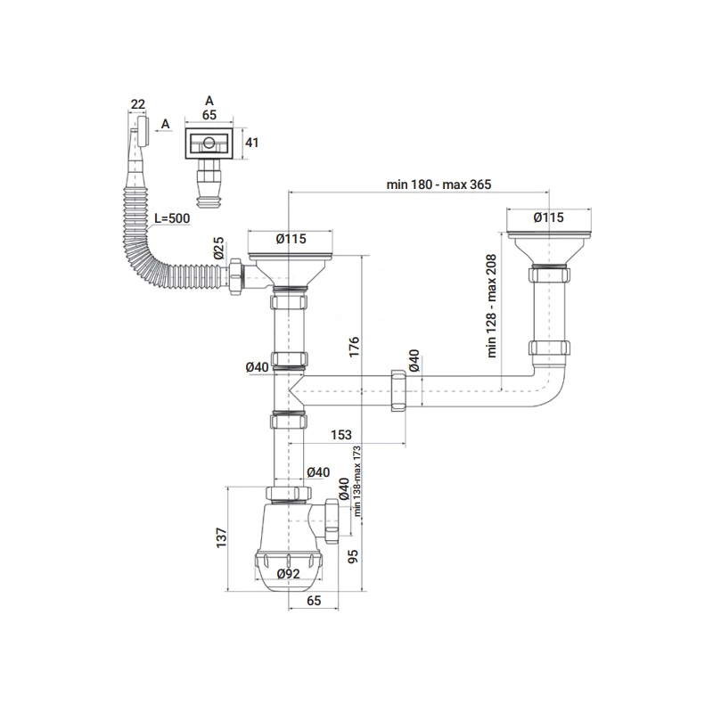 - Комплектация Сифон, гнучка труба 40х40/50 для підключення до ка