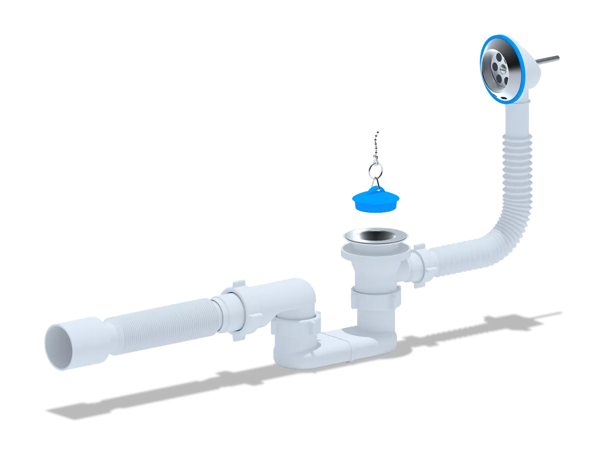 Сифон для ванни ANI-plast Е056 плоский з випуском 1 1/2" x 40, з переливом, з гнучкою трубою 375 x 4
