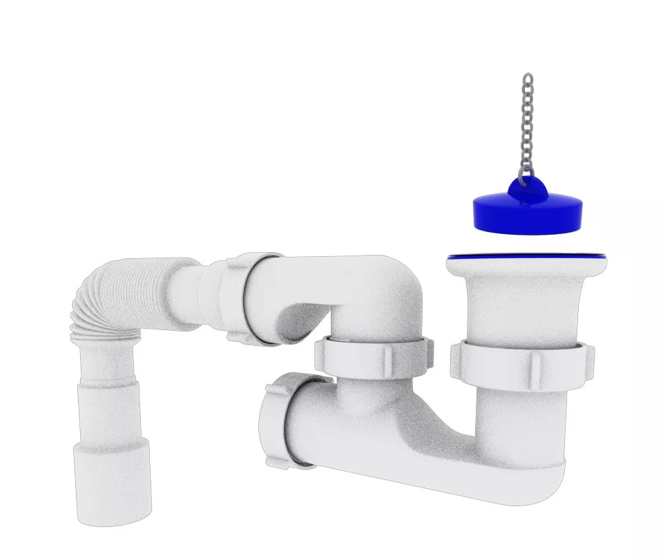 Сифон с ревизией, гофротруба 40х50, Сетка и винт М6х40 из нержавеющей стали.