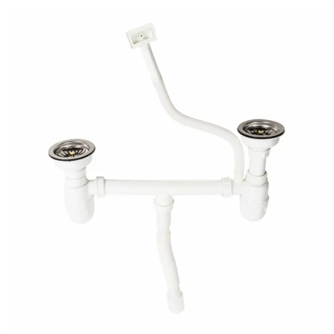 Оновіть вашу кухню з сучасним і практичним сифоном J002 Platinum у білому кольорі. Цей подвійний сифон - ідеальний вибір для вашої кухонної мийки додаючи не лише стиль, але й ефективність до вашого простору.