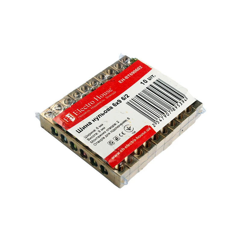 Шина нулевая 6х9 мм² 6/2, 2 отверстия EH-BT690602 от ElectroSpace - высококачественное изделие, которое значительно облегчает работу электриков и повышает безопасность электросетей. Ее использование является незаменимым при сборке электрощитов, поскольку она обеспечивает надежное электрическое и механическое соединение нулевых, защитных и фазных проводников. Благодаря конструкции и компактным размерам (6х9 мм²), шина легко интегрируется в любую систему.