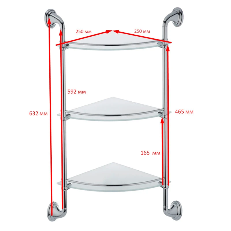 Скляна полиця кутова 3-ярусна Zerix LR1507-3 (LL1409)