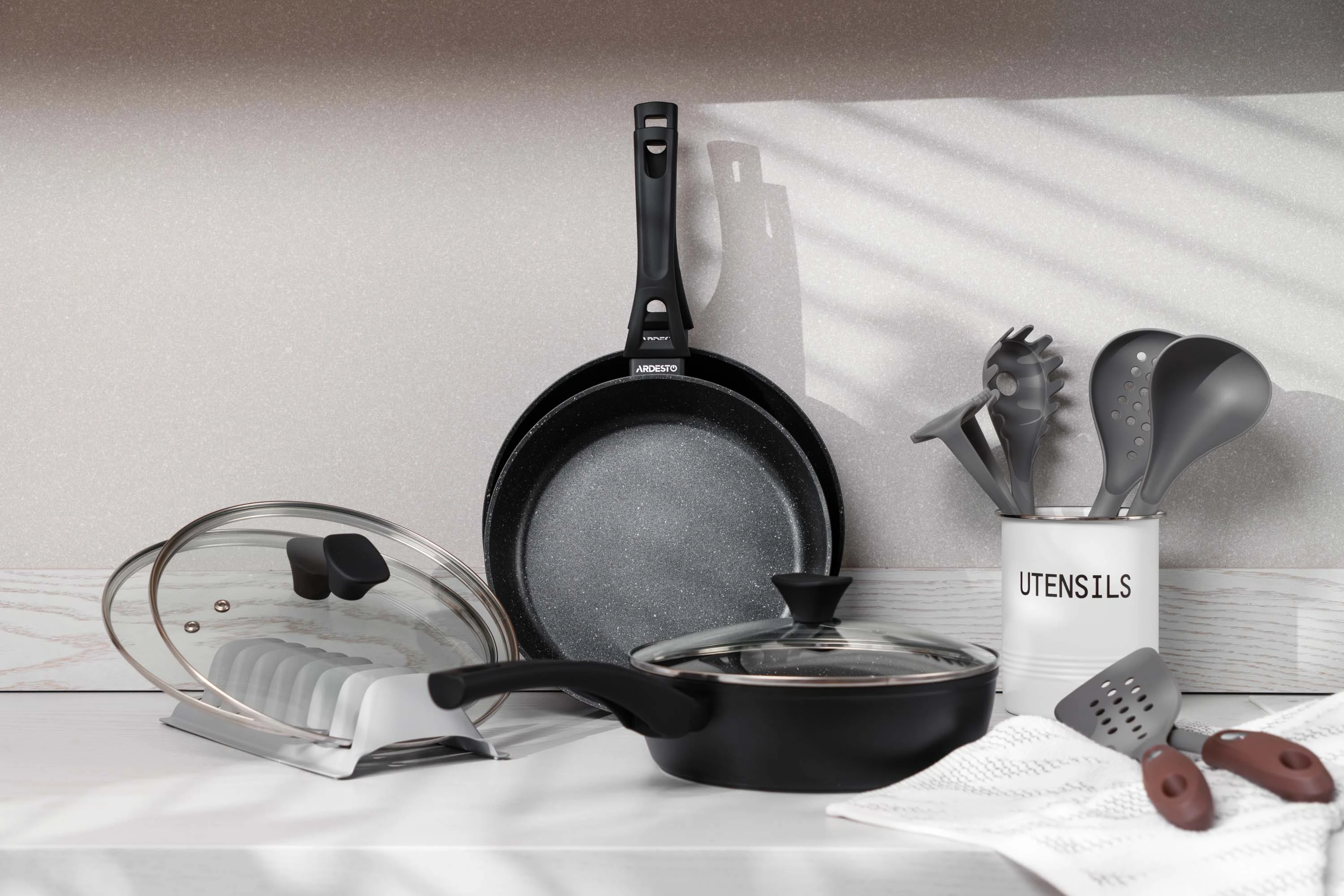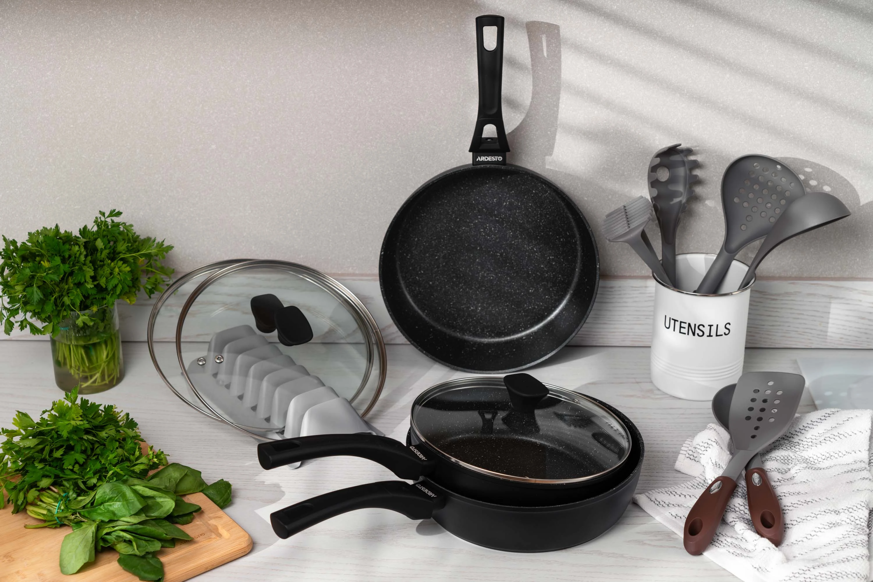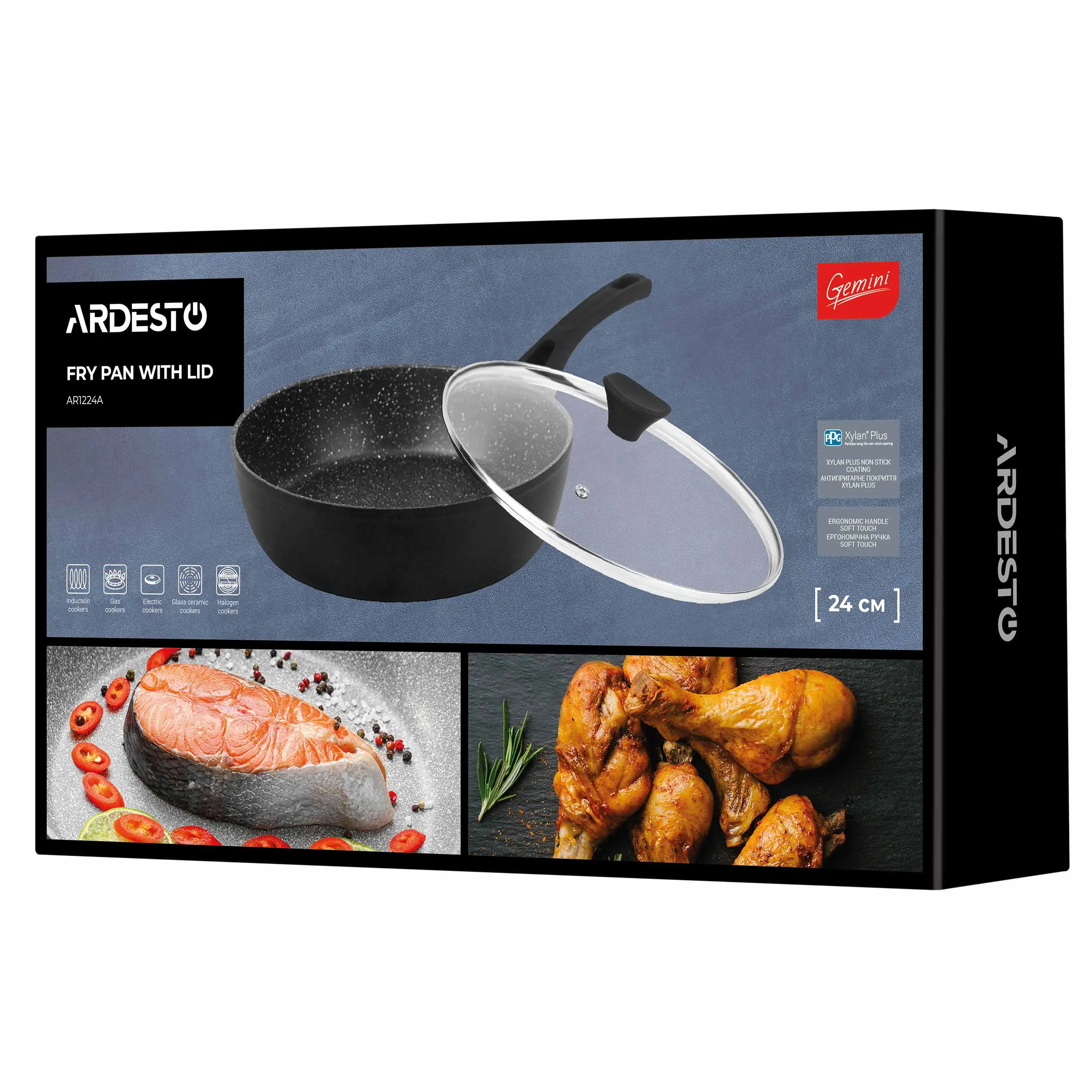 Сковорода глибока з кришкою Ardesto Gemini Livorno, 24см, алюміній, чорний
