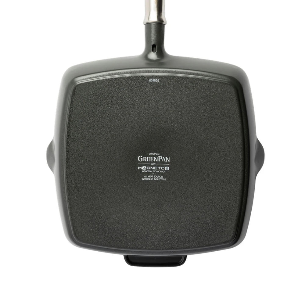 Покрита керамічним антипригарним покриттям Thermolon™ Infinity Professional, посиленим алмазним напиленням, ця квадратна сковорода-гриль надзвичайно міцна і легко чиститься. Індукційна технологія Magneto забезпечує ефективну роботу на всіх варильних поверхнях, включно з індукційними.