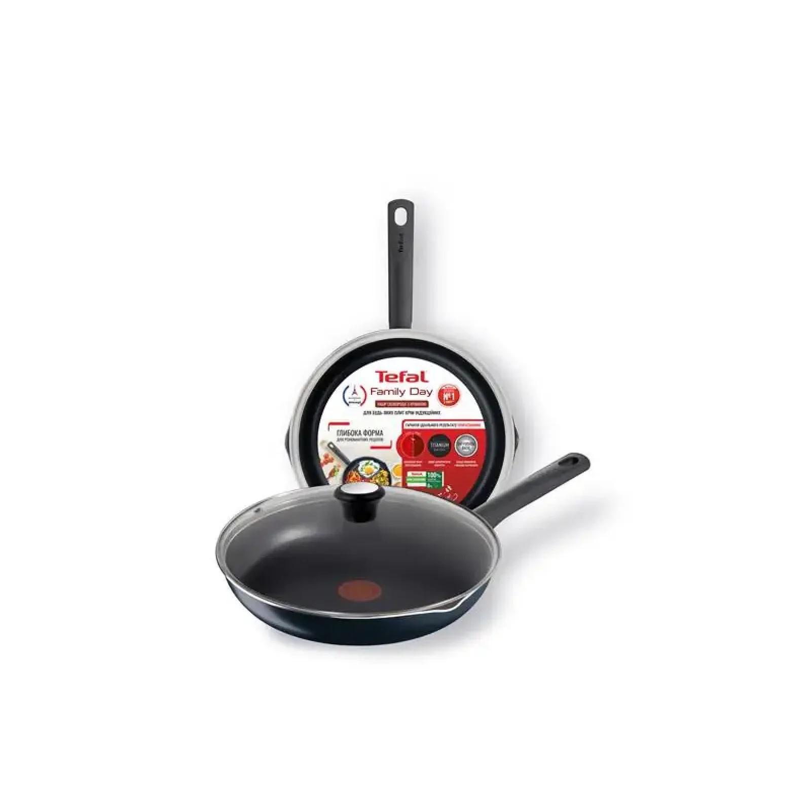 Сковорода Tefal Family Day, 28см, алюминий, бакелит, стекло, черный