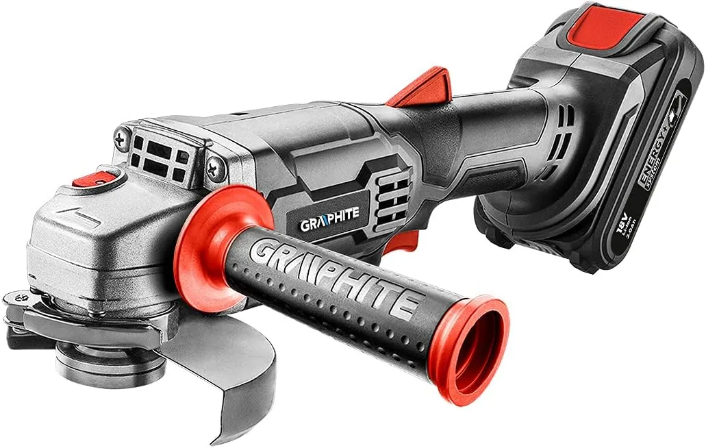 Шліфмашина кутова GRAPHITE, що працює з акумуляторними батареями 18 В Li-Ion/GRAPHITE Energy+. Призначена для роботи з дисками діаметром 115 мм, максимальна частота обертання складає 10000 обертів на хвилину.