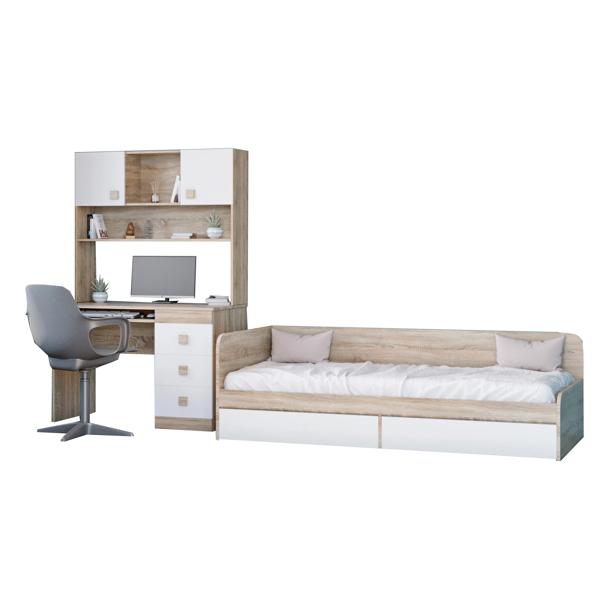 Ваша дитина заслуговує на найкраще! Комплект Спальні Дитячої Еверест Соната вражає своїм сучасним дизайном та практичністю. Модульна конструкція з трьох елементів дозволяє легко адаптувати простір під потреби вашої дитини, забезпечуючи максимальний комфорт та зручність. Комбінація дуба сонома та білого кольору надає інтер'єру легкості і свіжості, створюючи затишну атмосферу для навчання та відпочинку.