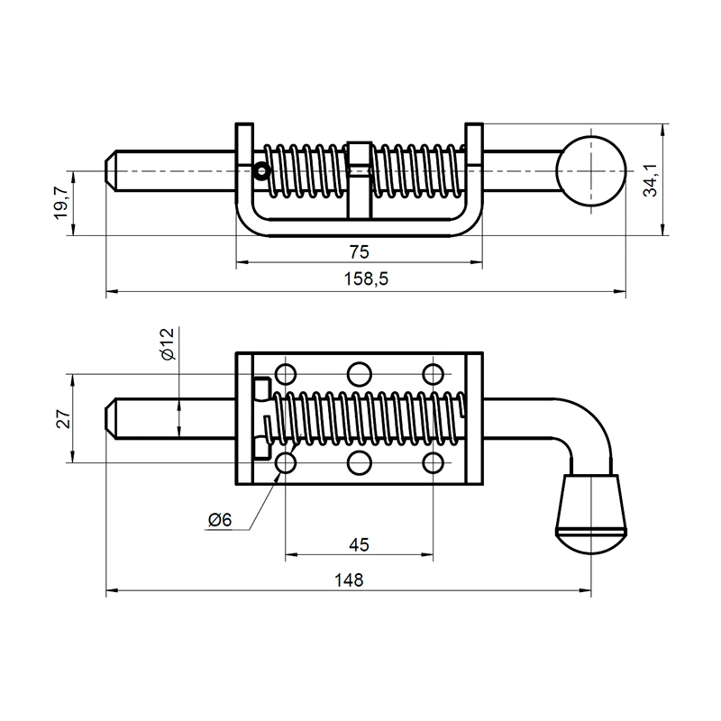 Шпингалет пружинный RZ L14125 — накладной запорный механизм со стальным корпусом и пружинным штоком, предназначенный для фиксации дверей или дверец в закрытом положении. Встроенная пружина позволяет шпингалету автоматически возвращаться в позицию закрывания без дополнительных действий.