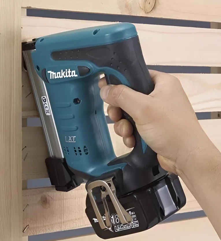 Акумуляторний степлер Makita DST221Z призначений для кріплення матеріалів скобами довжиною від 10 до 22 мм. Працює від акумуляторів платформи LXT 18 В. Магазин вміщує до 98 скоб, що підходить для серійних операцій. Регулювання глибини дозволяє адаптувати інструмент під різні матеріали. Алюмінієвий магазин забезпечує стабільну подачу скоб.