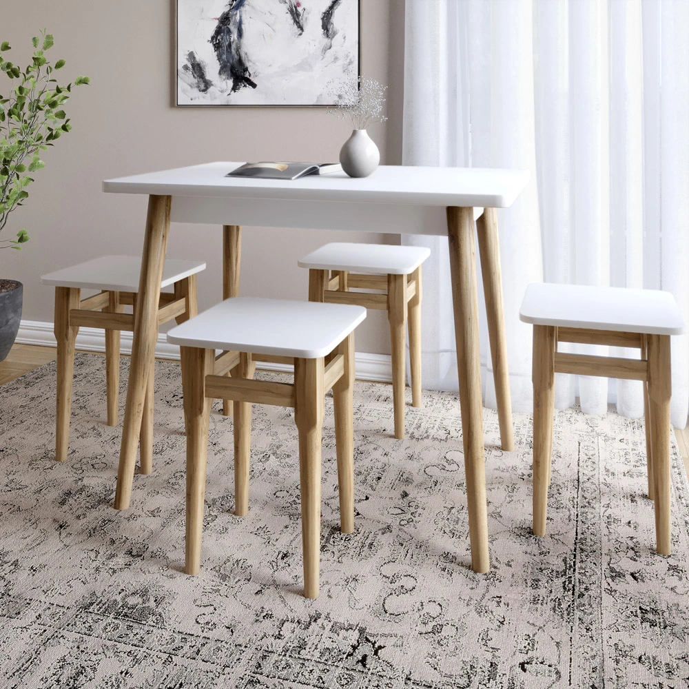 Откройте для себя обеденный комплект Майами-2, сочетающий элегантный дизайн и практичность. Этот комплект состоит из стола и четырех табуретов и станет идеальным дополнением к вашей кухне, создавая уютную атмосферу для семейных обедов и встреч с друзьями. Использование ПВХ кромки толщиной 0,45 мм обеспечивает надежность и устойчивость к повреждениям, что делает его отличным выбором для ежедневного использования.