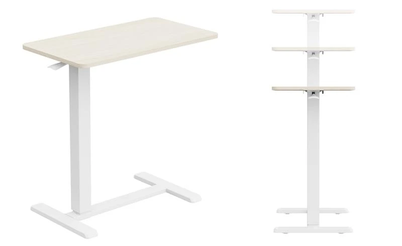Компактний стіл із ламінованою стільницею бежевого кольору та металевою рамою забезпечує комфортну роботу сидячи або стоячи завдяки плавному механічному регулюванню висоти (710–1 060 мм). Стійка конструкція, приховані коліщатка та сучасний дизайн роблять його зручним для використання вдома чи в офісі. Максимальне навантаження – до 8 кг, вага – 10,2 кг, гарантія – 24 місяці.