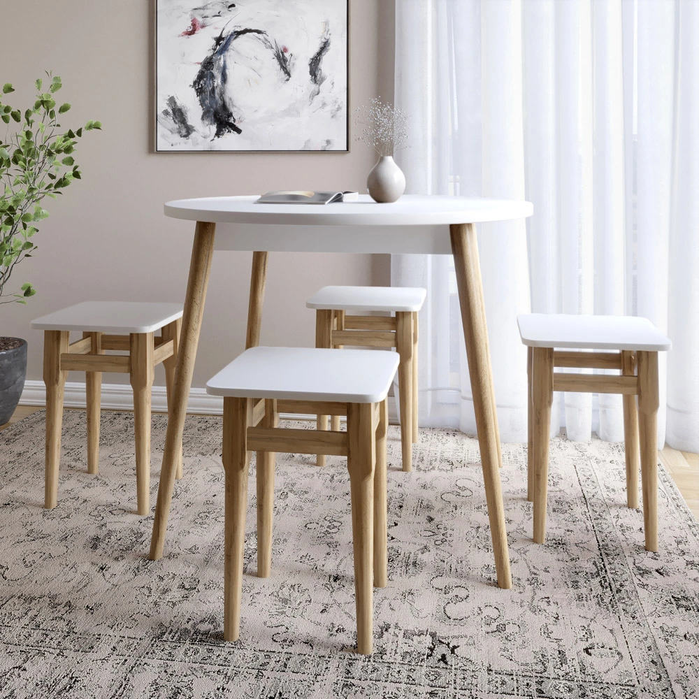 Вас привлекает стильный и функциональный интерьер? Обеденный комплект "Майами-1" идеально подойдет для вашей кухни, придавая ей современный вид. Круглый стол в сочетании с четырьмя табуретами создает уютную атмосферу для семейных обедов и встреч с друзьями.