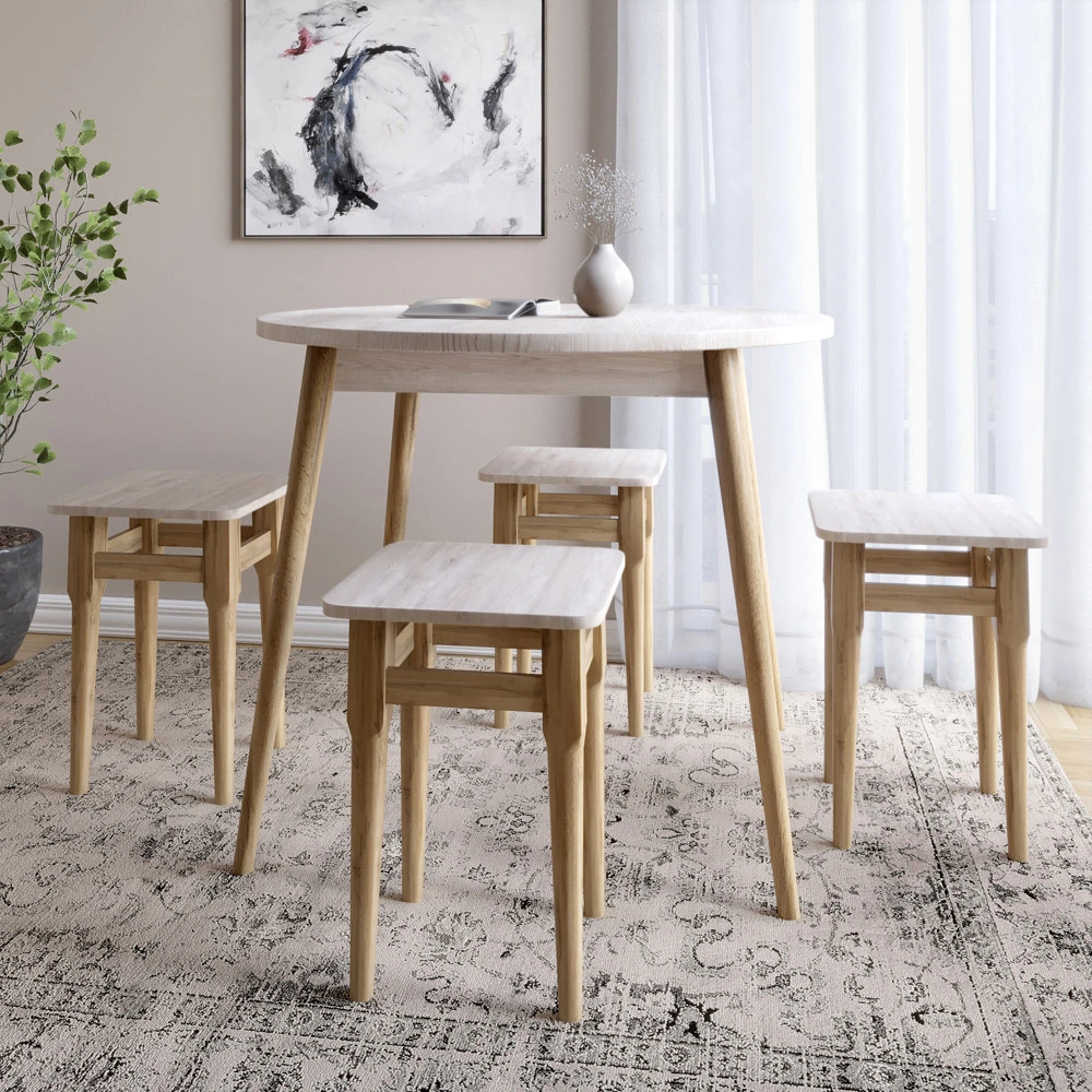 Не только внешний вид важен, но и удобство. Входящие в комплект четыре табурета обеспечивают комфортное сиденье для каждого члена семьи. Их легкая конструкция позволяет легко перемещать их при необходимости, что делает ваше пространство более функциональным.