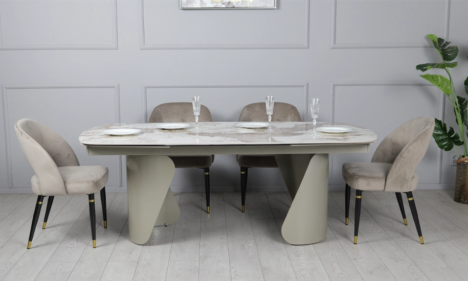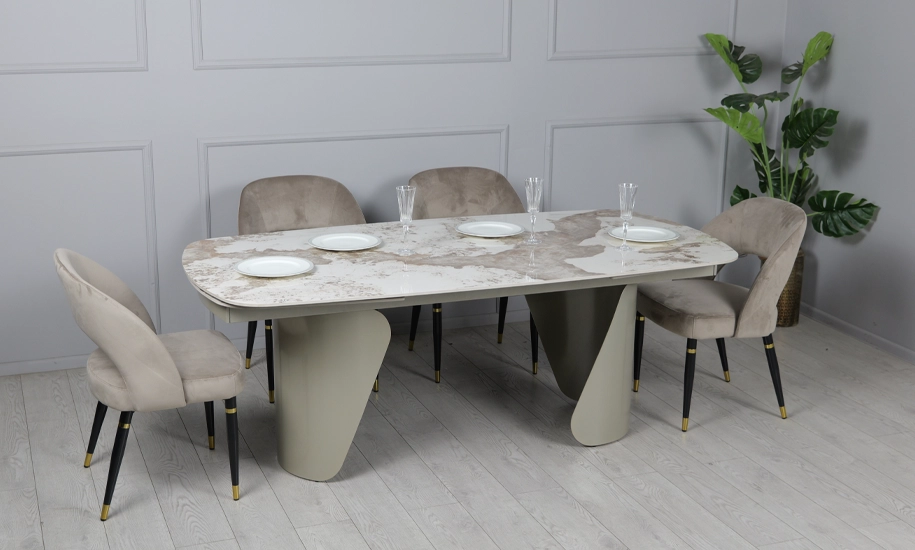 Стіл Опера 2000/(500+500)х1000х750 бежевий — розкладний стіл з керамічною стільницею для сучасного інтер’єру.