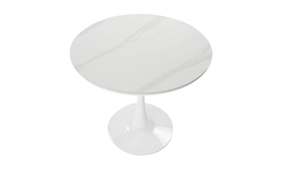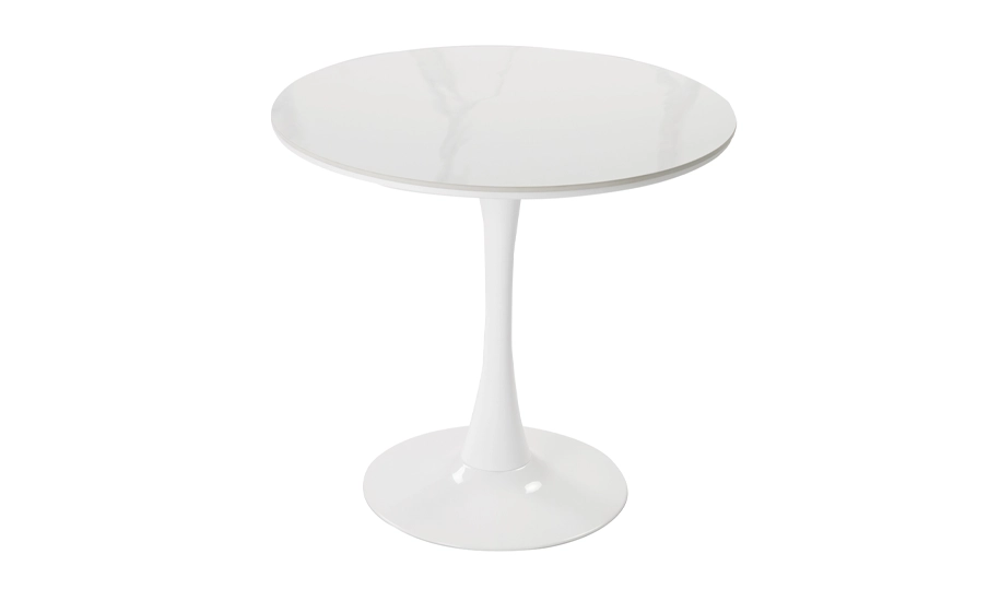 Круглий обідній стіл Шарм поєднує легкість дизайну та функціональність, створюючи атмосферу затишку навіть у невеликих кухнях чи студіях. Діаметр стільниці 800 мм забезпечує комфортне розміщення для 2–4 осіб, а плавна форма без гострих кутів додає простору гармонійності. Білий глянцевий відтінок із ефектом гірського каменю надає столу елегантного вигляду й робить його універсальним рішенням для сучасних інтер’єрів.