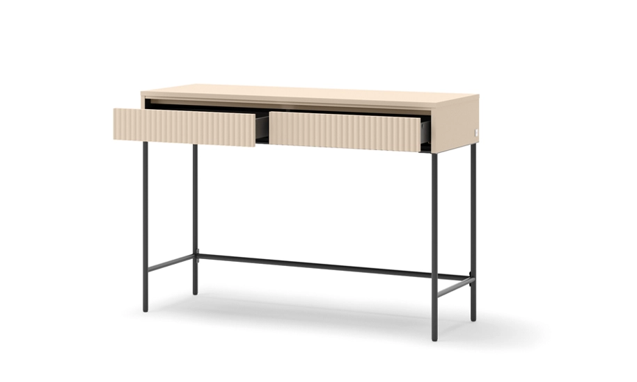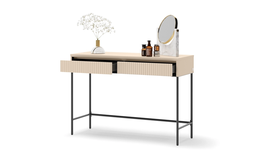 Стіл туалетний 2ш Trend / Тренд — сучасне рішення для спальні у поєднанні пісочно-бежевого відтінку з чорними акцентами. Лаконічний дизайн робить модель універсальною для інтер'єрів у стилі мінімалізм, скандинавський чи сучасна класика.