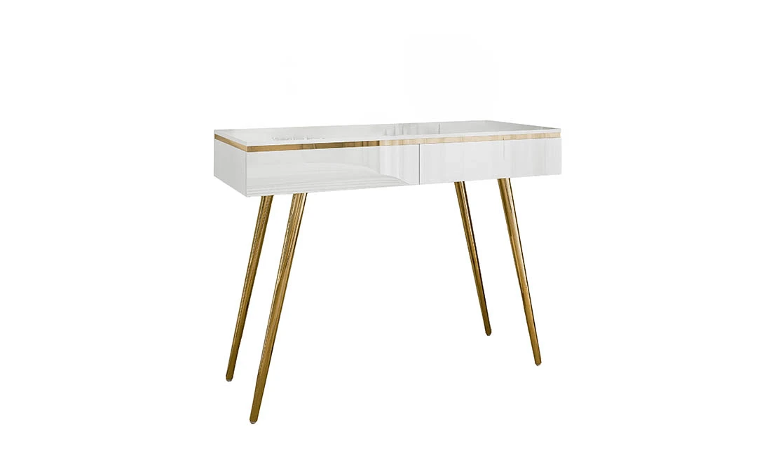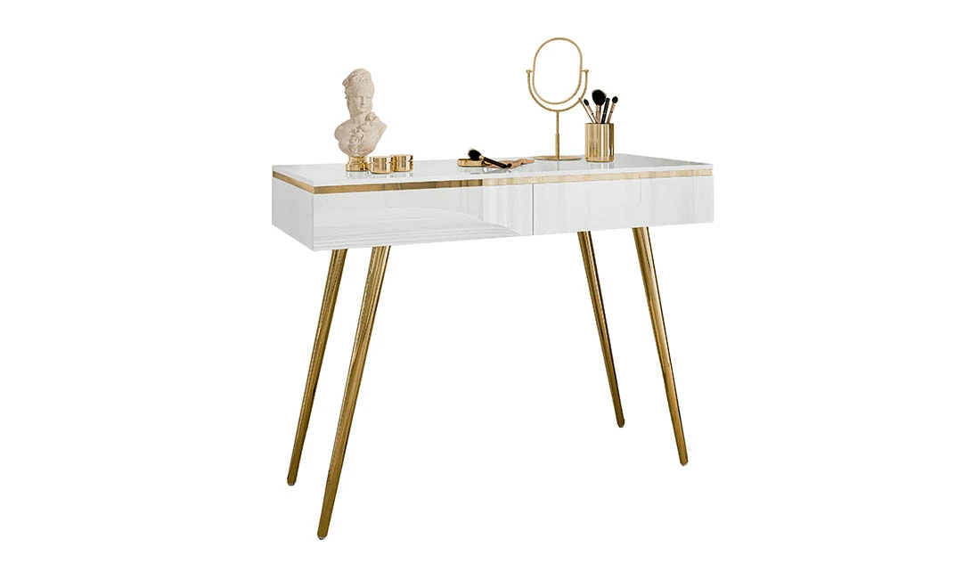 Стіл туалетний Моніка 2Ш білий глянець/золото
