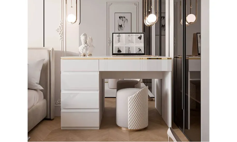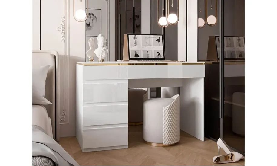 Стіл туалетний/письмовий Моніка 5Ш білий глянець/золото