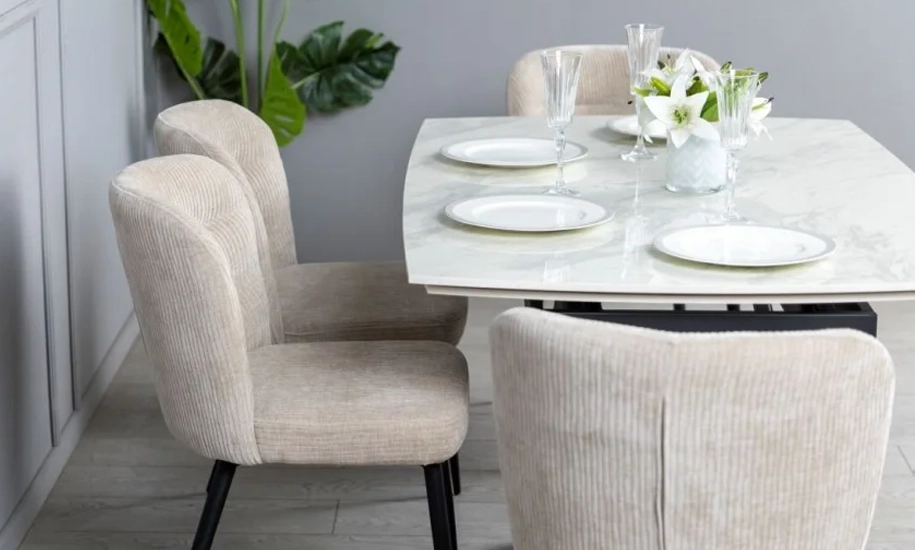 - Комфортне сидіння – спинка та сидіння оббиті якісною тканиною, що робить кожен прийом їжі чи роботу за столом приємними.