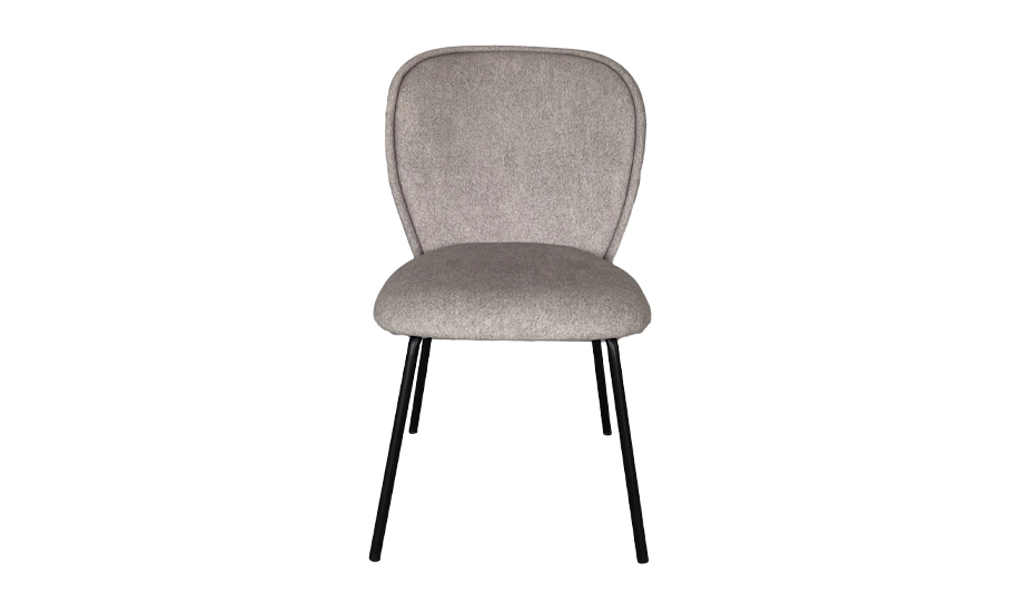Стілець Сімпл поєднує прості форми та контрастну комбінацію світлої оббивки з чорними ніжками.