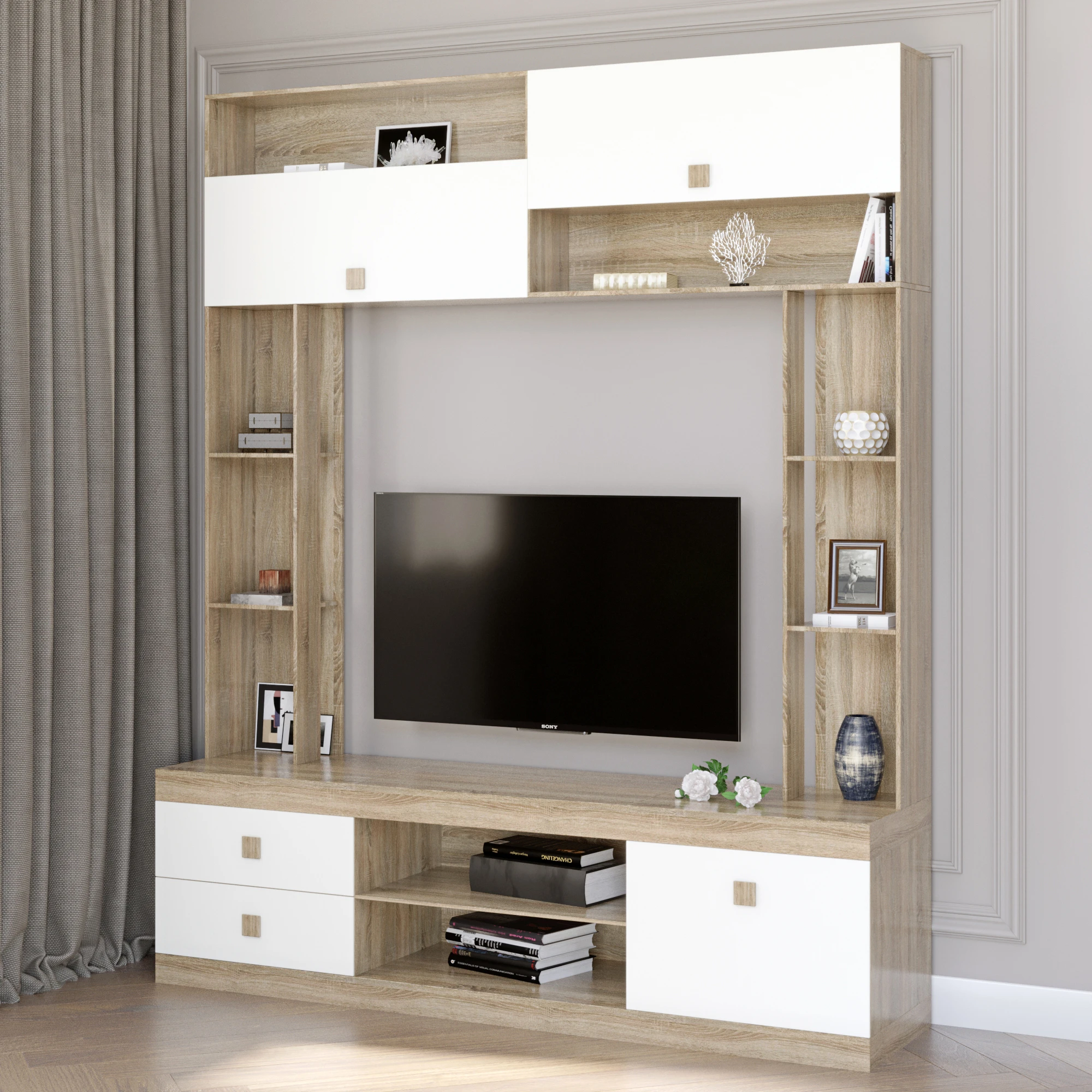 Стінка для вітальні Еверест Соната дуб сонома + білий (DTM-2250)