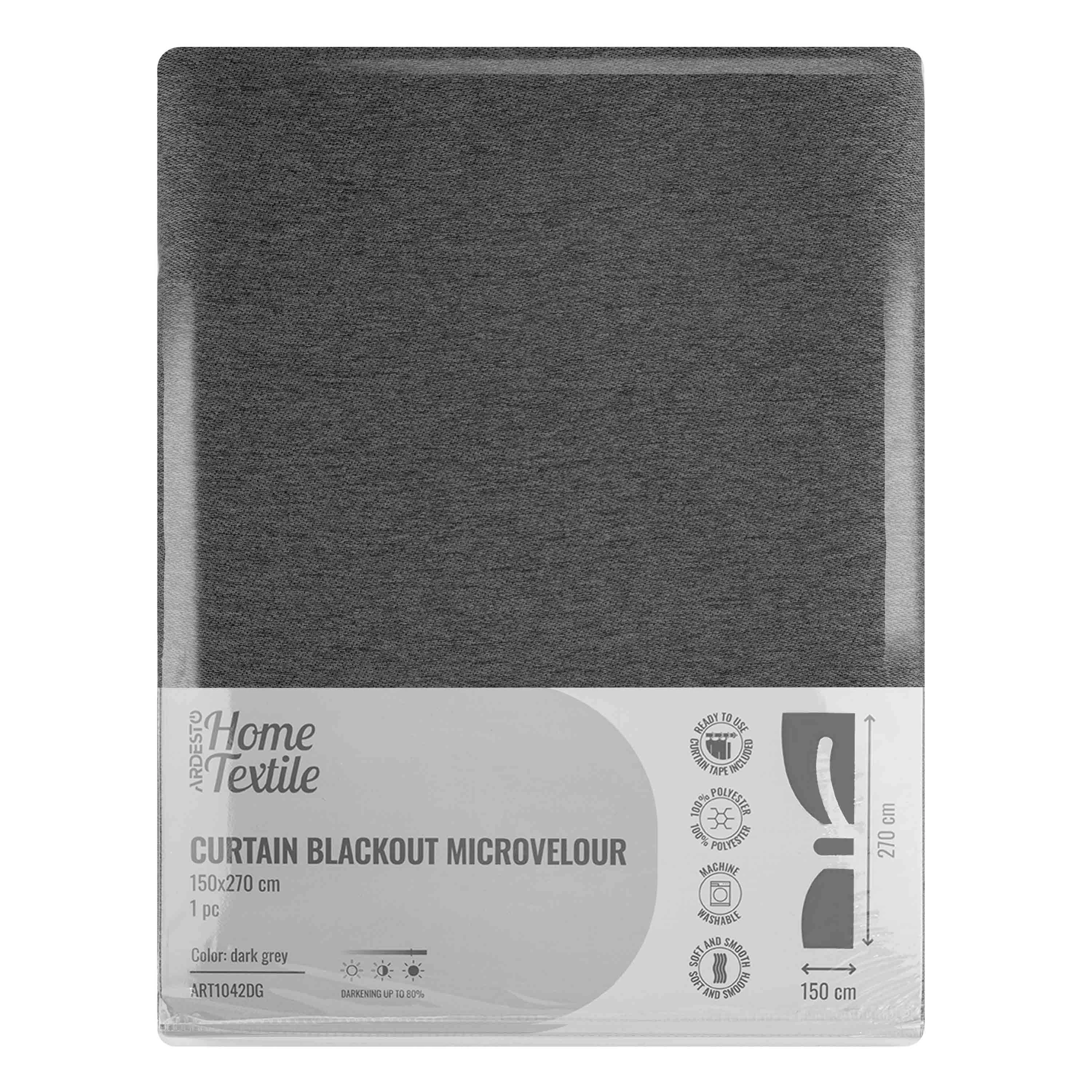 Штора ARDESTO 150х270см, блекаут мікровелюр, 100% поліестер, сірий темний