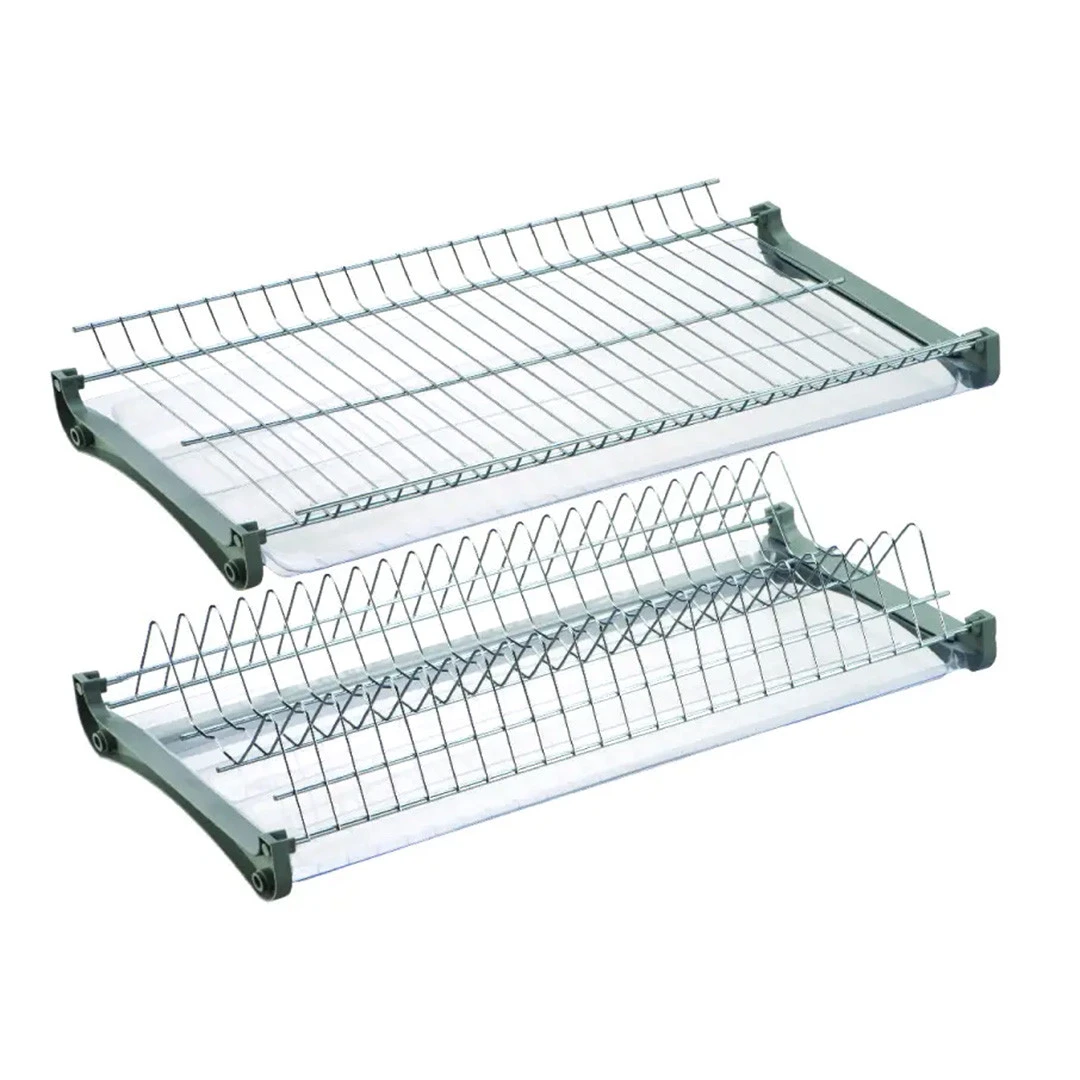 Стильне й функціональне рішення для кухні. Два рівні дозволяють ефективно сушити тарілки, чашки і столові прибори, зберігаючи порядок і економлячи простір. Матеріали - сталь із хромованим покриттям та пластик; підходить для установки на стільниці.