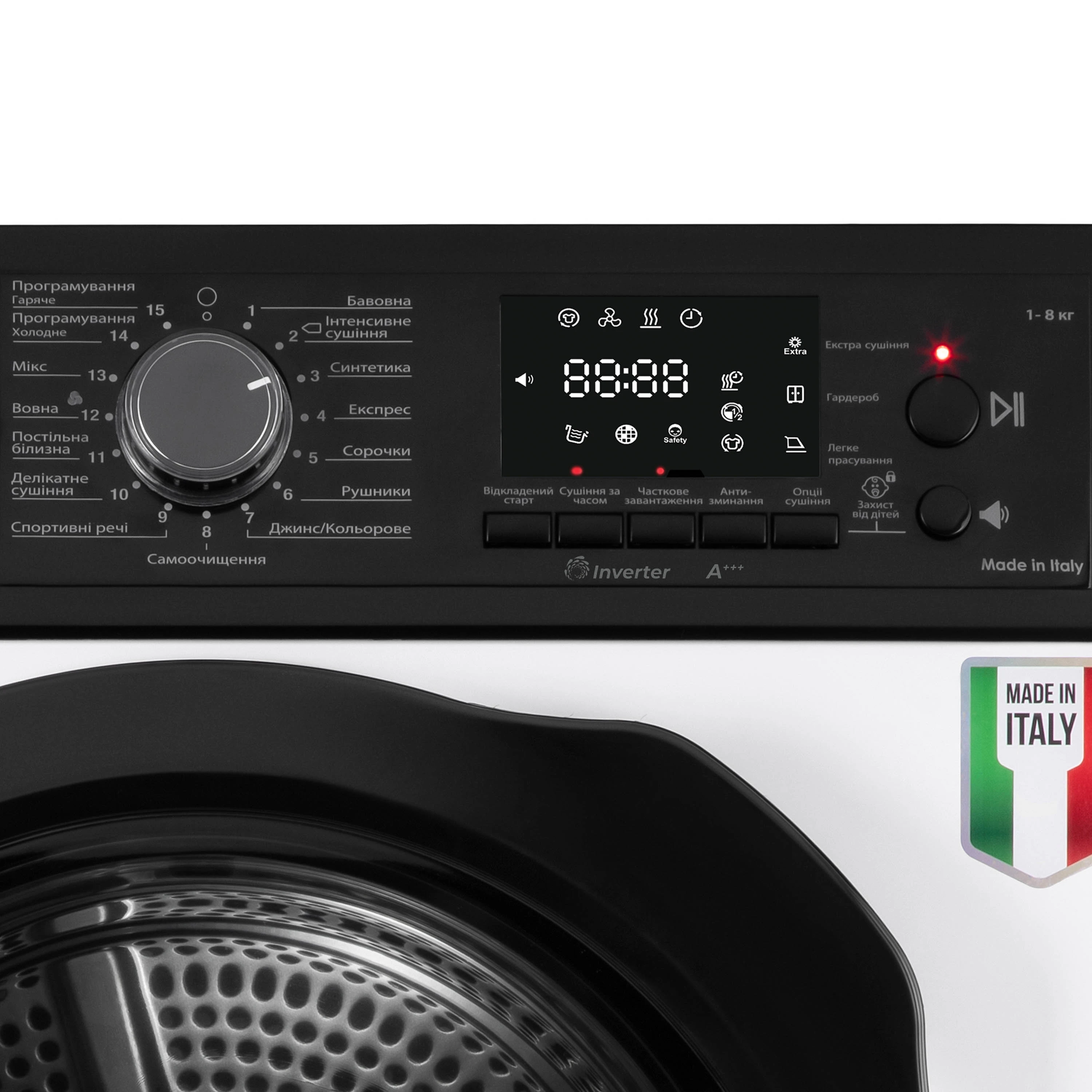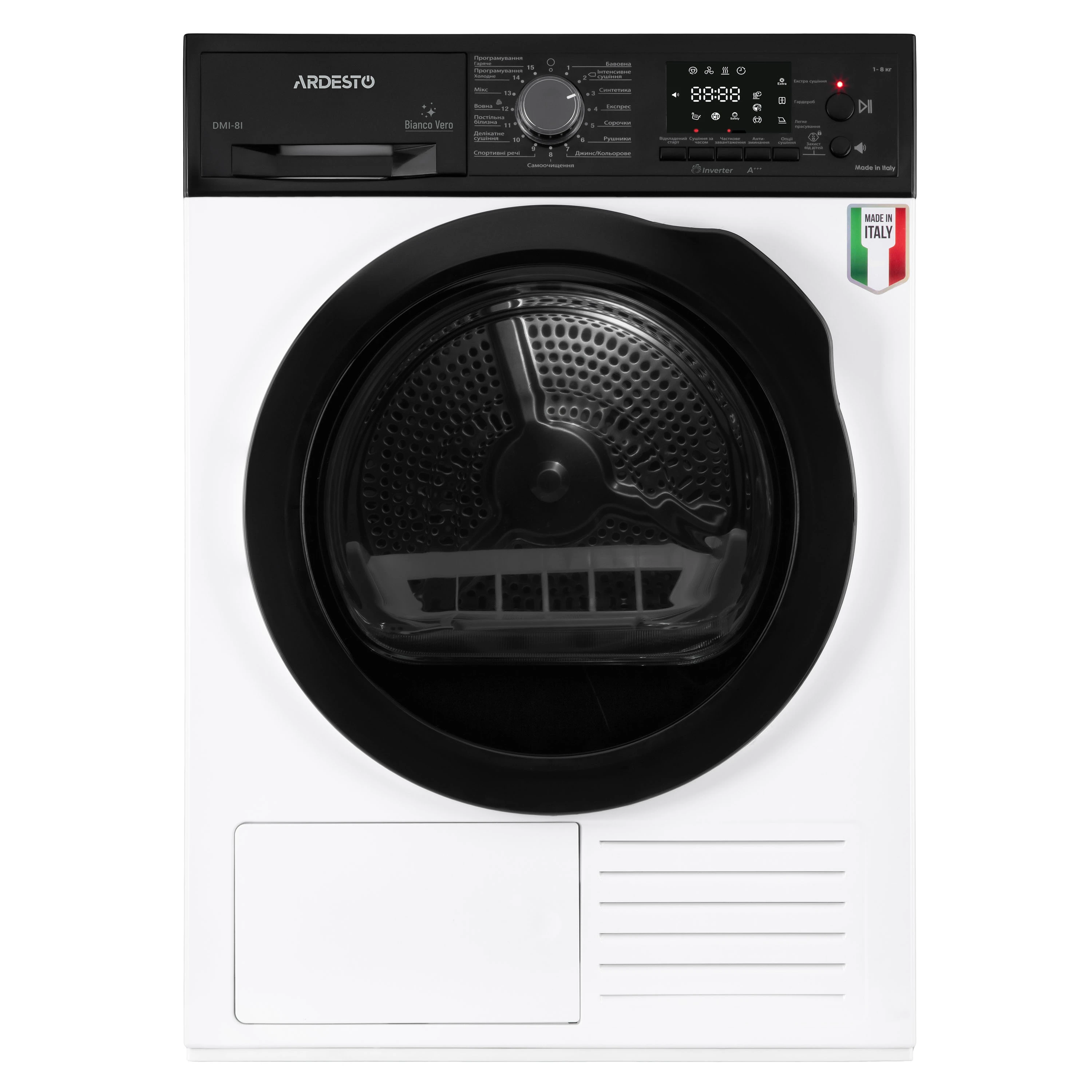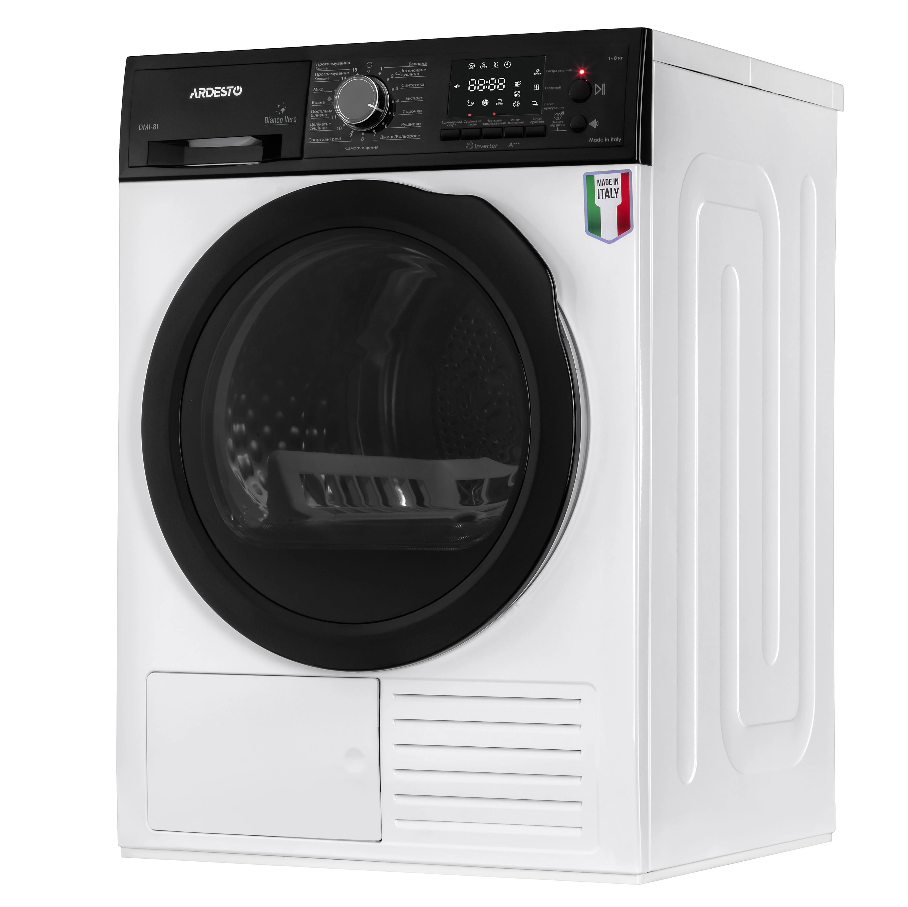 Сушильна машина ARDESTO тепловий насос Bianco Vero, 8кг, A+++, 63см, дисплей, інвертор, підсвіч.бара