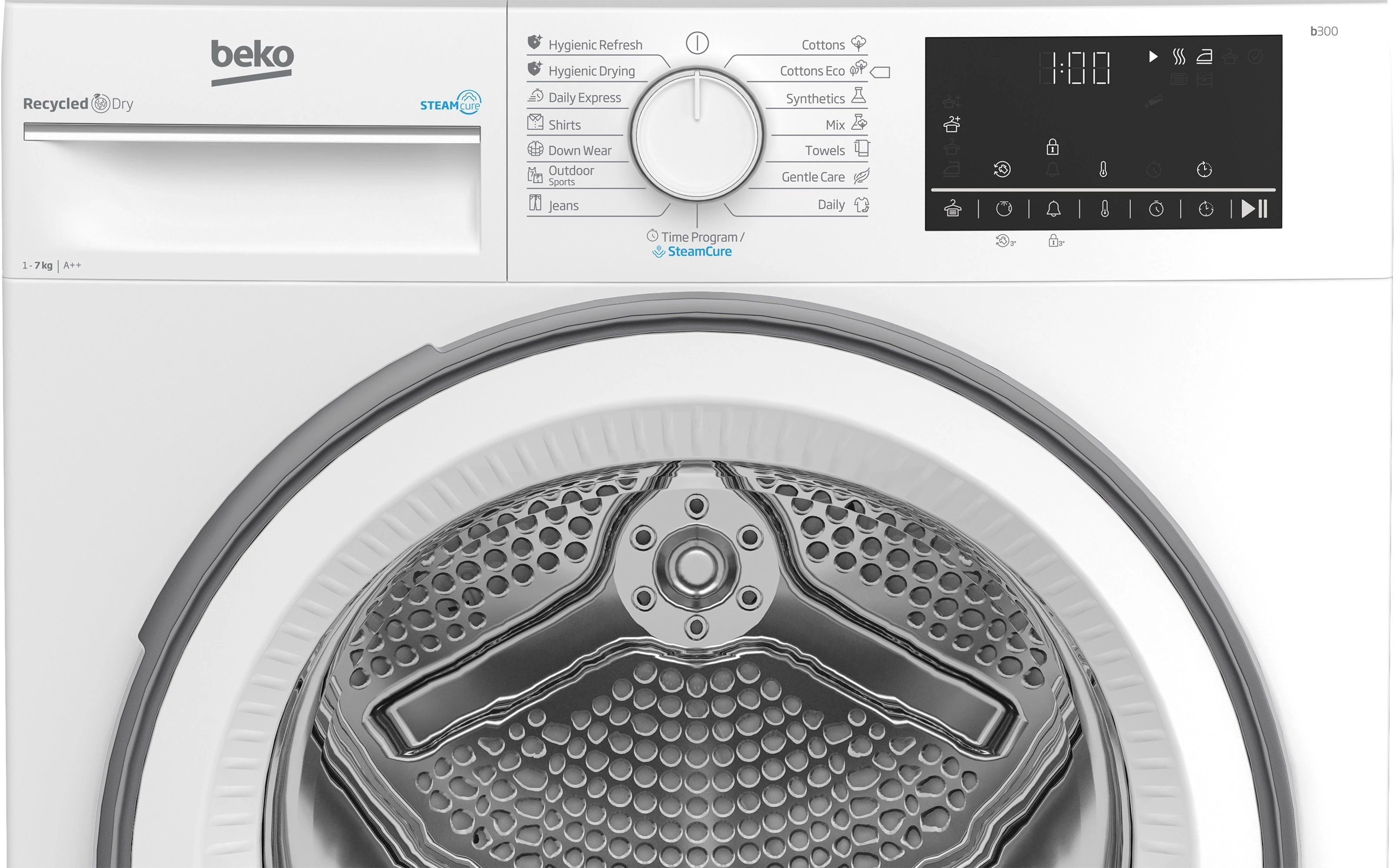 Сушильна машина Beko тепловий насос, 7кг, A++, 54.3см, дисплей, підсвітка барабану, білий