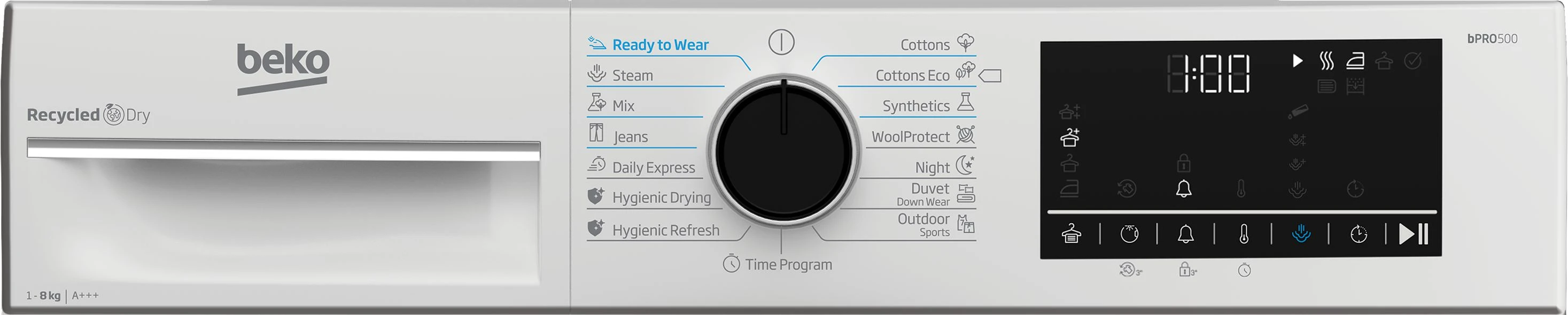 - Основные программы пухові вироби; джинси; синтетика; спортивний одяг; вовна; бавовна; Мікс; експрес; Еко бавовна; гігіє