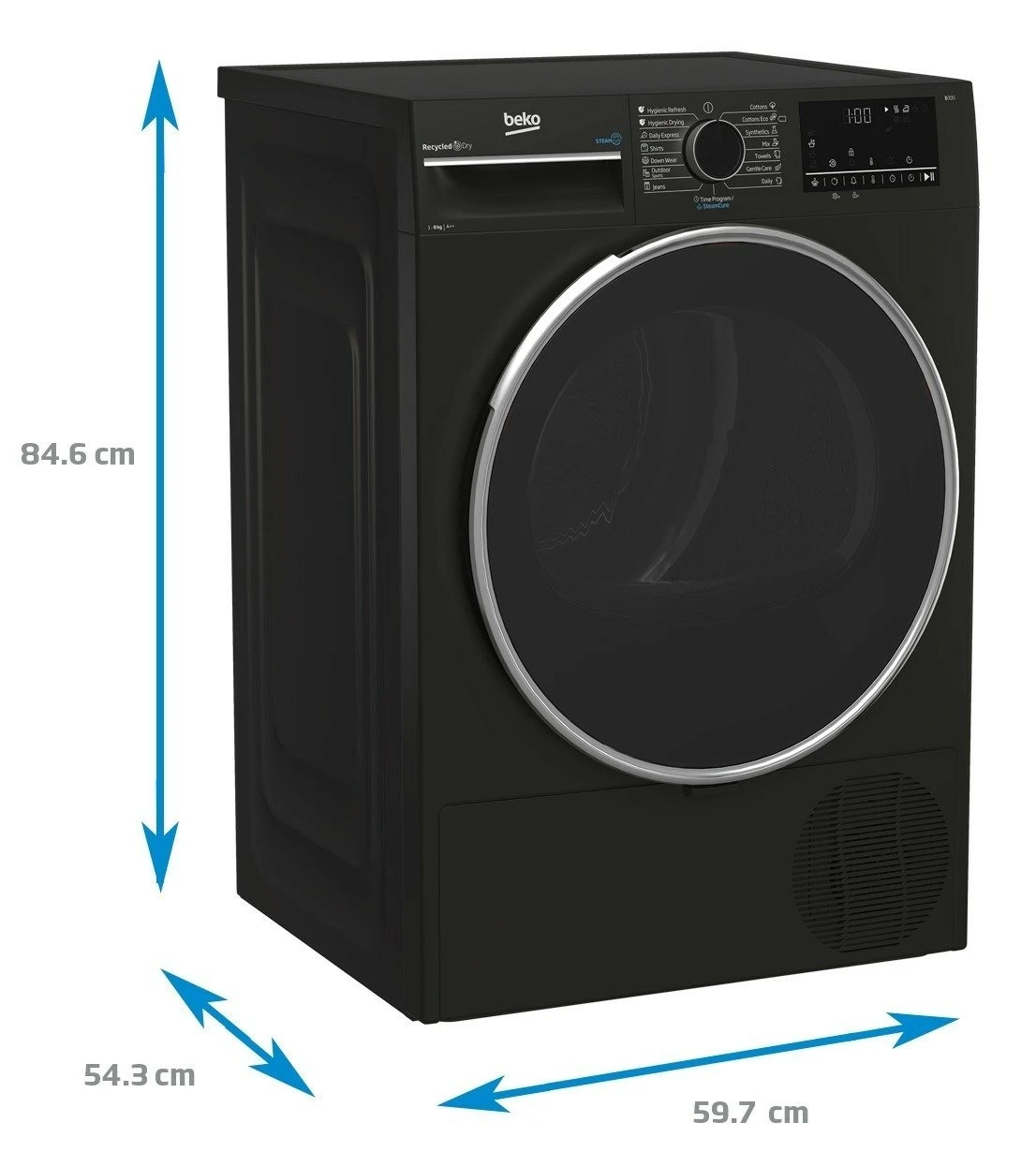 Сушильна машина Beko тепловий насос, 8кг, A++, 60см, дисплей, підсвітка барабану, сірий