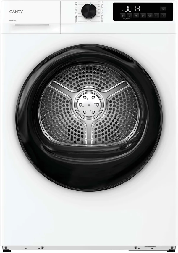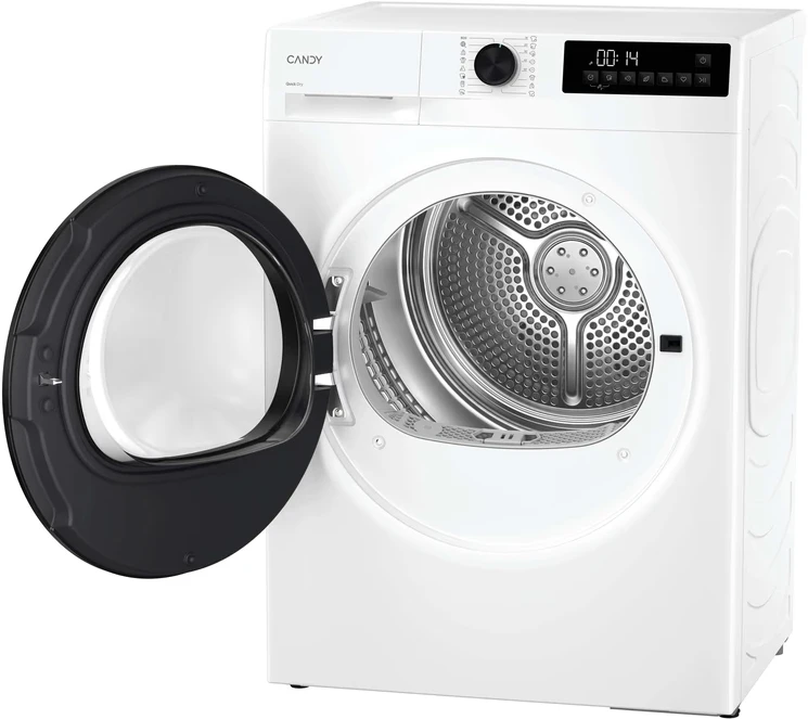 Сушильна машина Candy GDL8N2B-S з тепловим насосом розрахована на 8 кг білизни та належить до класу енергоефективності A++. Об’єм барабана 86 л і реверсивне обертання забезпечують рівномірне сушіння великих речей без сильних складок. 16 програм включають вовну з сертифікацією Woolmark, джинси, сорочки, делікатні тканини та експрес-цикли 30–45 хвилин, а датчик вологості автоматично зупиняє процес на потрібному рівні сухості.