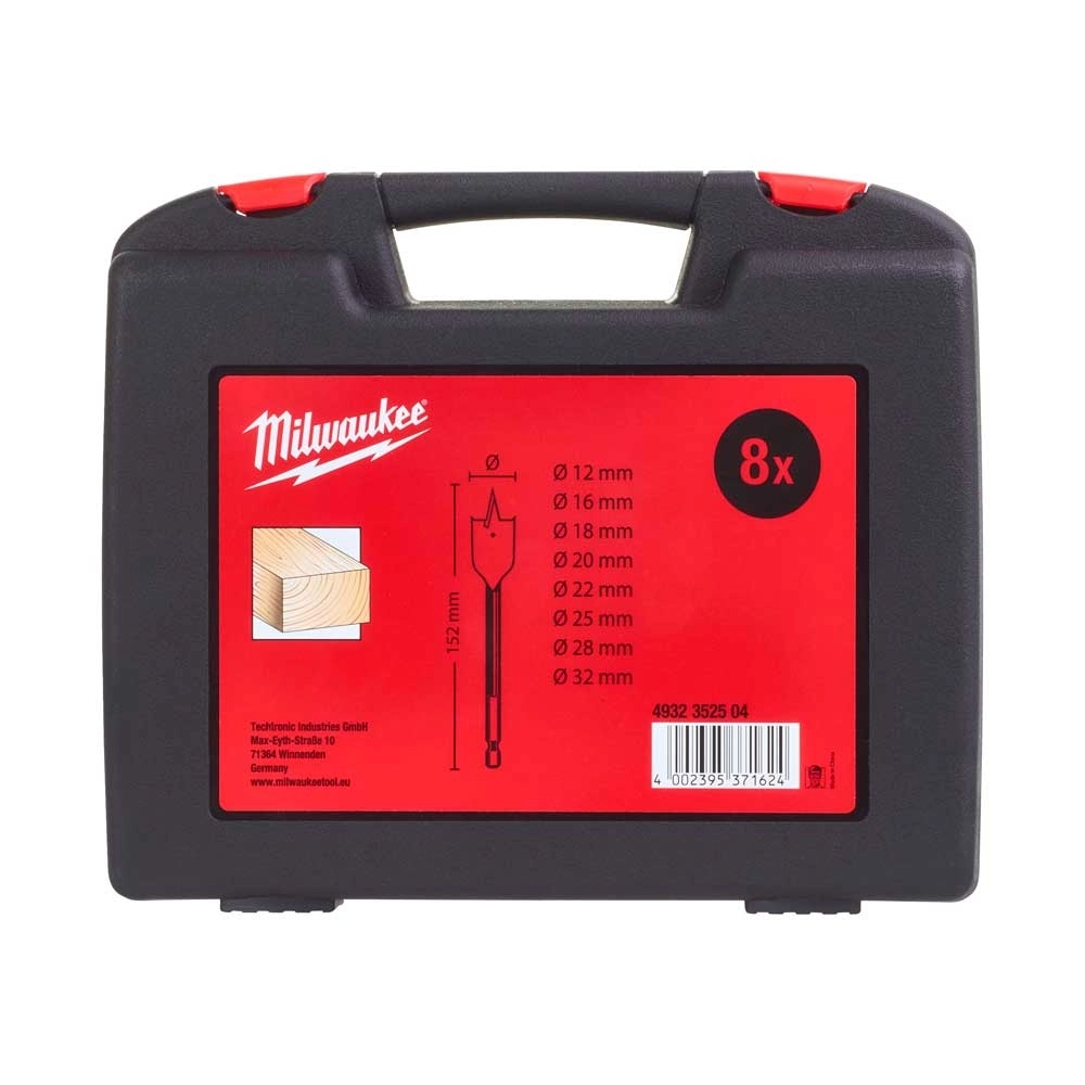 Свердло по дереву перове Milwaukee, набір 8шт, 12-32мм, шестигранний хвостовик, кейс