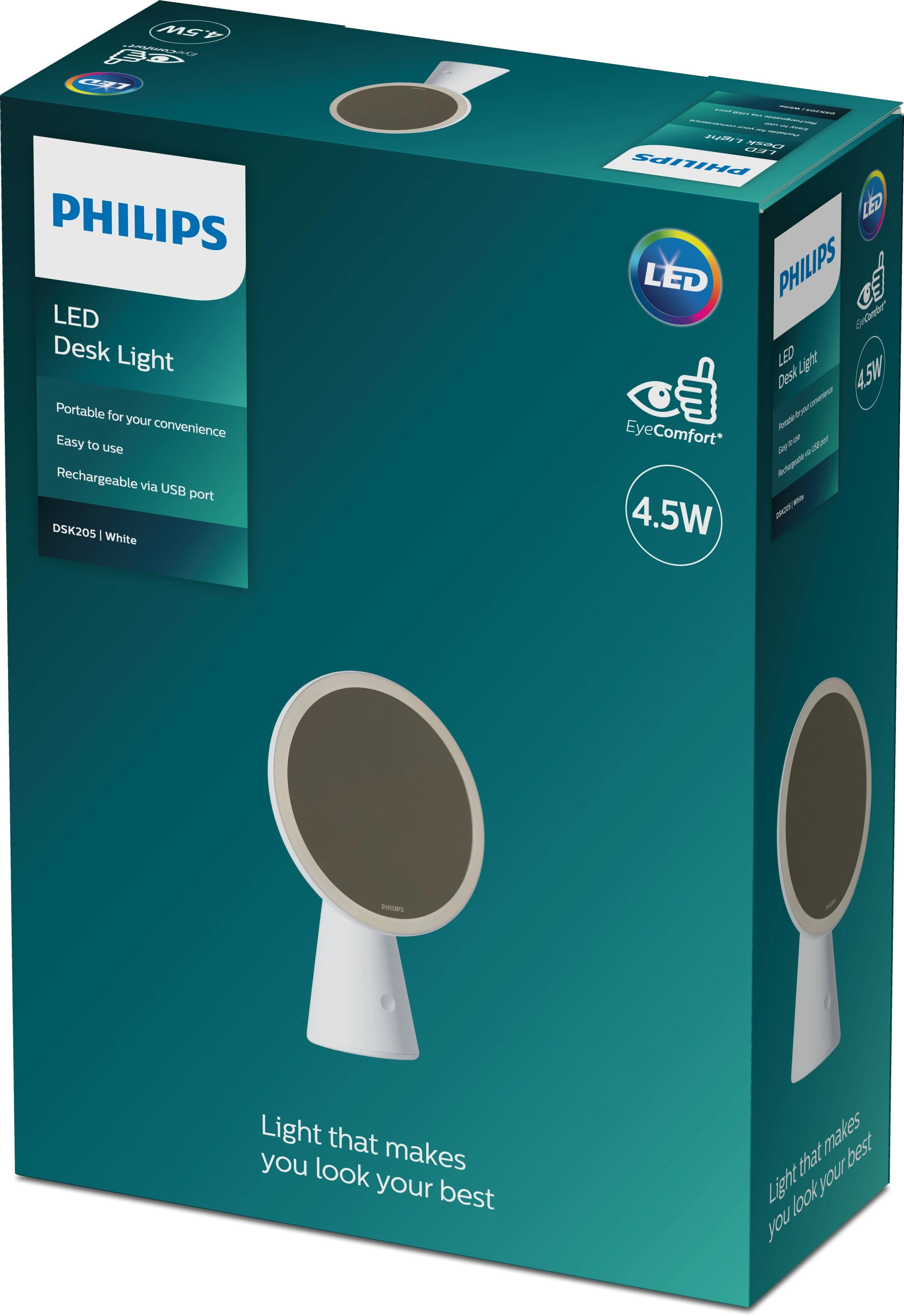 Косметичне дзеркало Philips Mirror з потужністю 4,5 Вт надає яскраве і регульоване освітлення для точного нанесення макіяжу. Воно обладнане USB-портом для зручного заряджання пристроїв безпосередньо біля дзеркала. Світлодіоди мають три колірні режими (5000K, 4000K, 3000K), дозволяючи вибрати ідеальне освітлення залежно від умов освітлення та власних уподобань. Білий колір дзеркала надає йому сучасний та елегантний вигляд, ідеально вписуючись в інтер'єр ванних кімнат та кімнат для макіяжу.