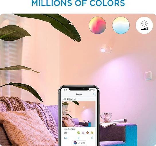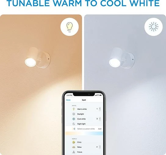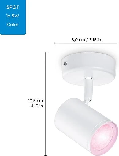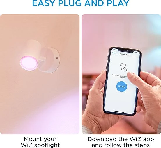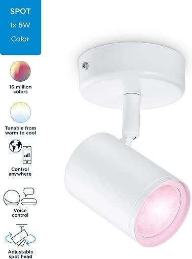 Розумний накладний точковий світильник WiZ Imageo білого кольору з можливістю керування WiFi. Для яскравого та насиченого кольорового освітлення створить приємну атмосферу та прикрасить ваш будинок. Широка кольорова гама забезпечує найбільш відповідне освітлення для вашого повсякденного життя. Для концентрації та підвищення продуктивності використовуйте холодне світло, а для того, щоб розслабитись та приємно провести час – м'який теплий білий колір.