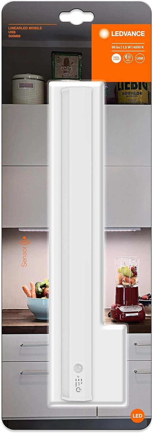 Світильник з акумулятором LEDVANCE Linear Mobile 1.5Вт 4000К 98Лм 300мм 1800мА•год датчик руху USB-A