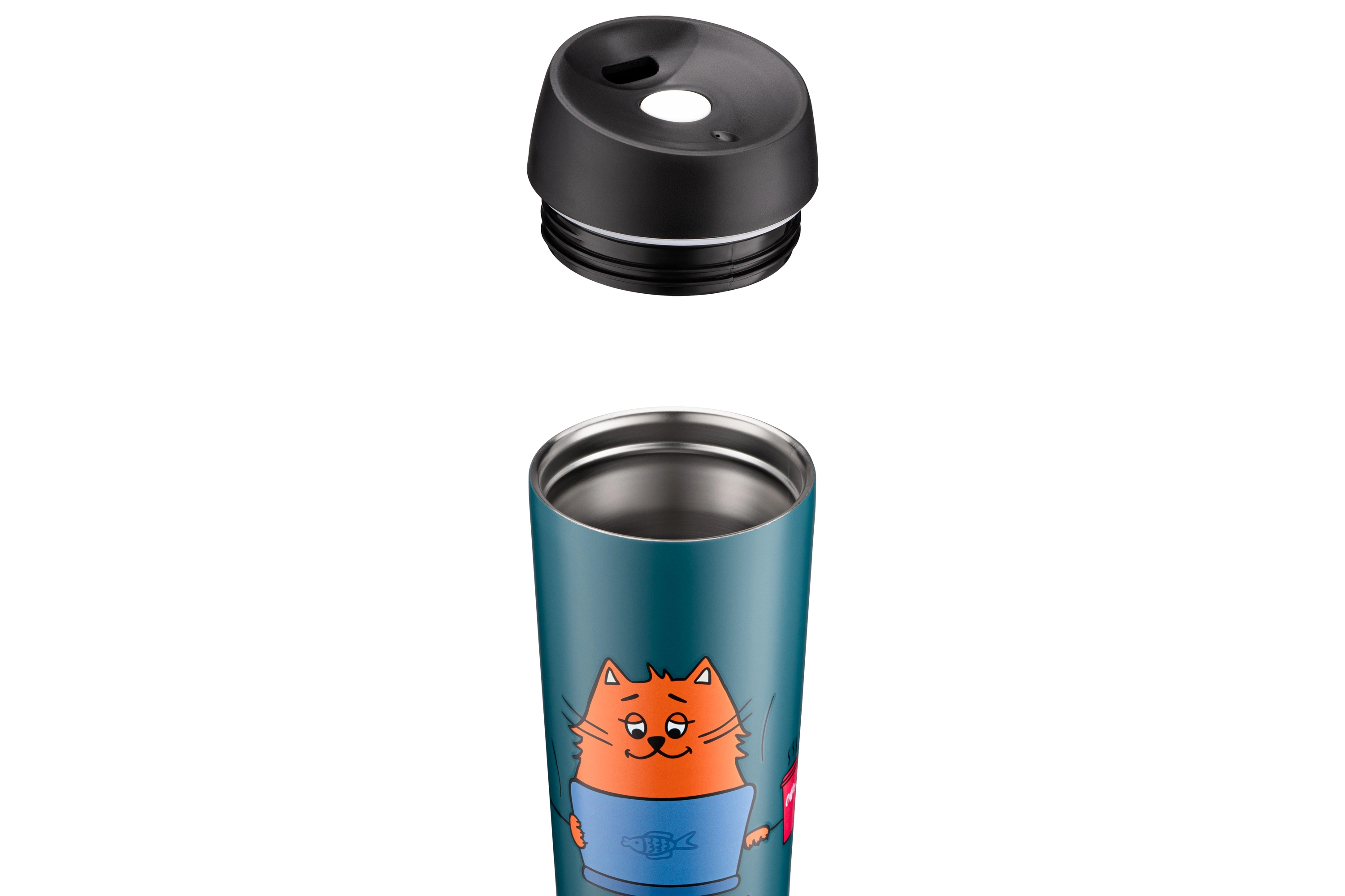 Термокухоль ARDESTO Coffee Time Red Cat виготовлено в ергономічному дизайні з високоякісної нержавіючої сталі. Механізм відкривання термокухля – зручна кнопка-клапан. Об’єм становить 450 мл. Термокухоль зберігає температуру гарячого напою 8 год, холодного – 16 год. Не містить BPA. Не рекомендовано мити в посудомийній машині.