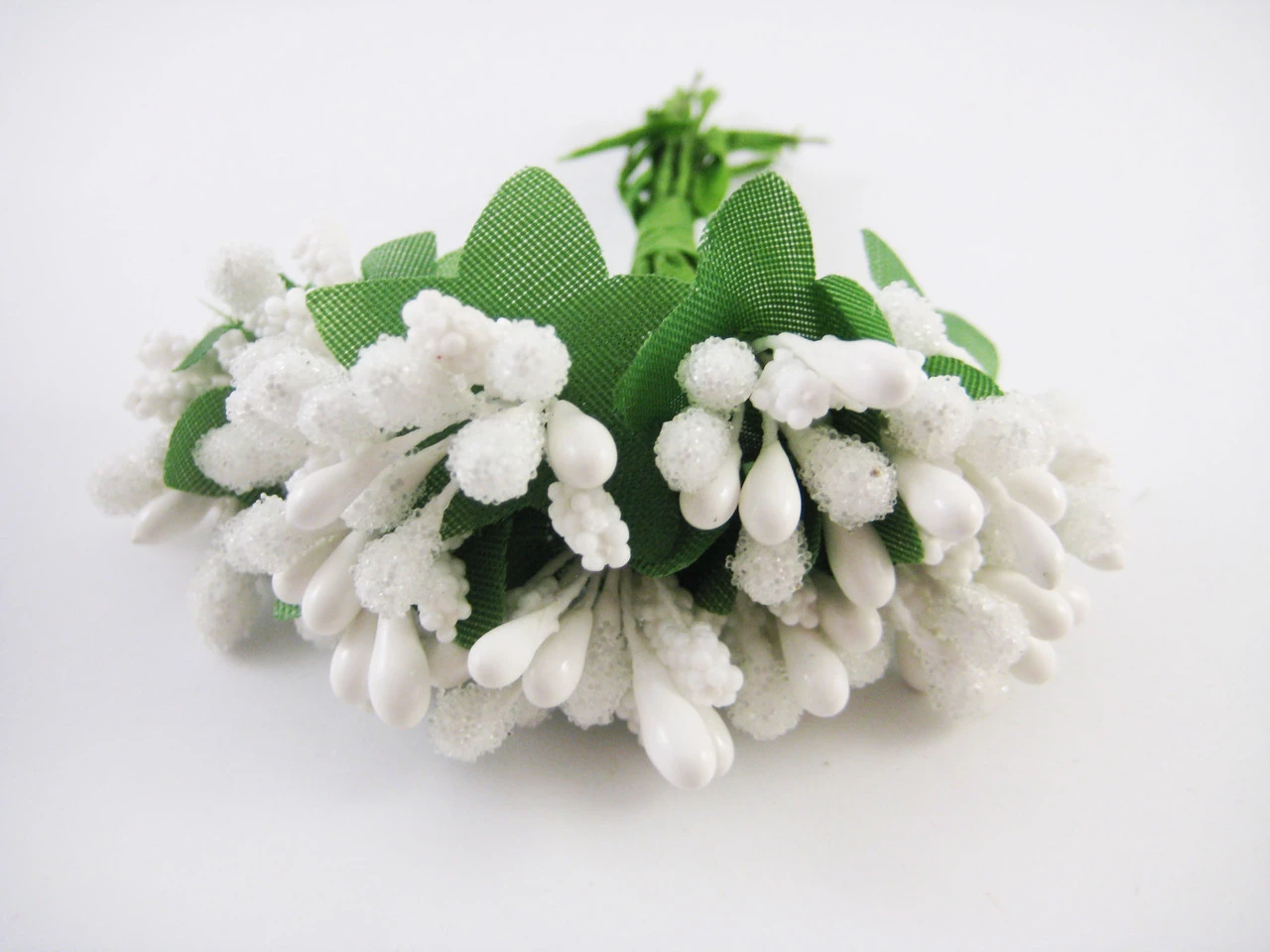 Цветы искусственные на ветке, 12шт/пучок, тычинки, Цвет «белый»