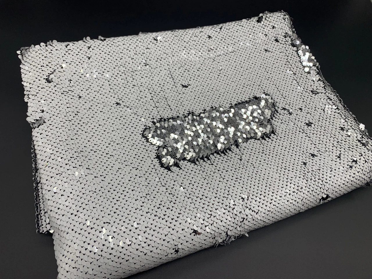 Ткань пайеточная, двусторонняя, Цвет «бело-серебристый»