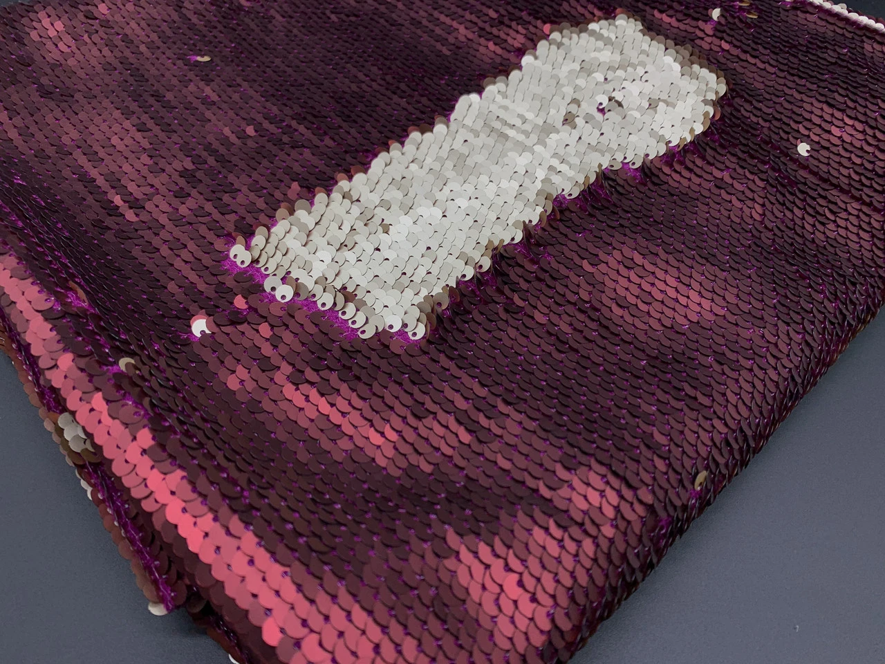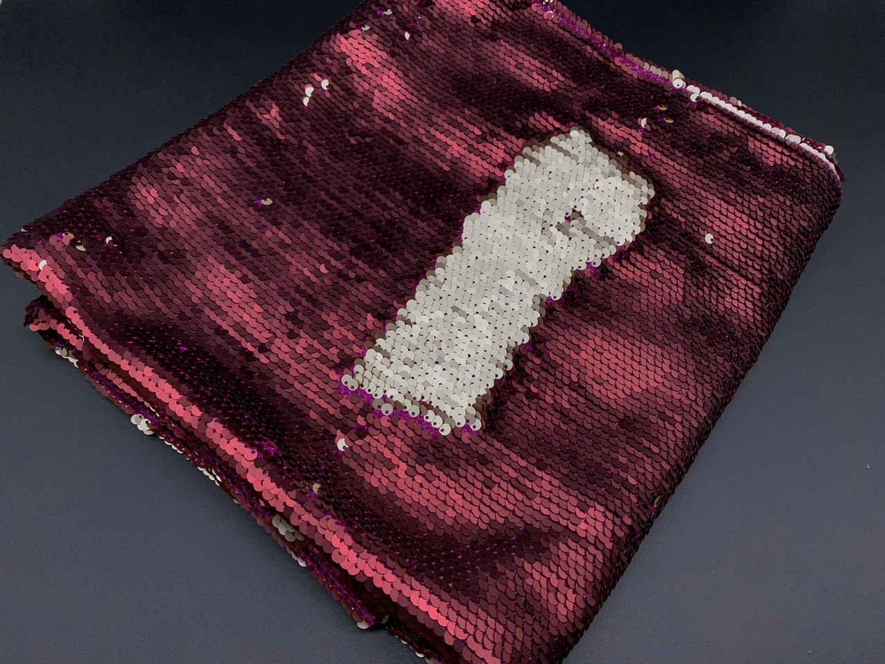Ткань пайеточная, двусторонняя, Цвет «бордово-серебристый»