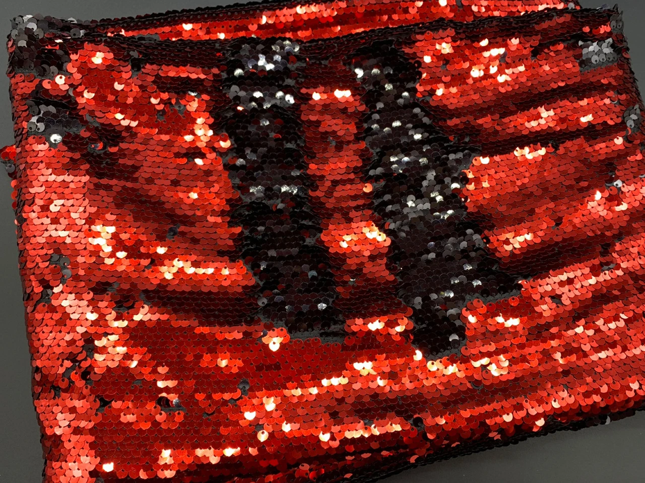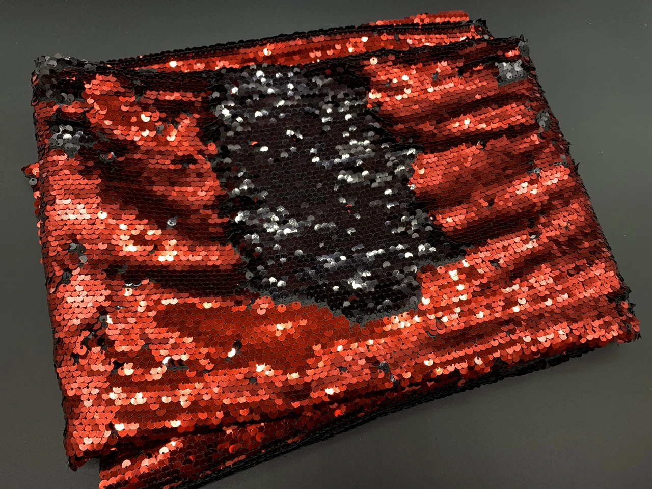 Ткань пайеточная, двусторонняя, Цвет «красно-черный»