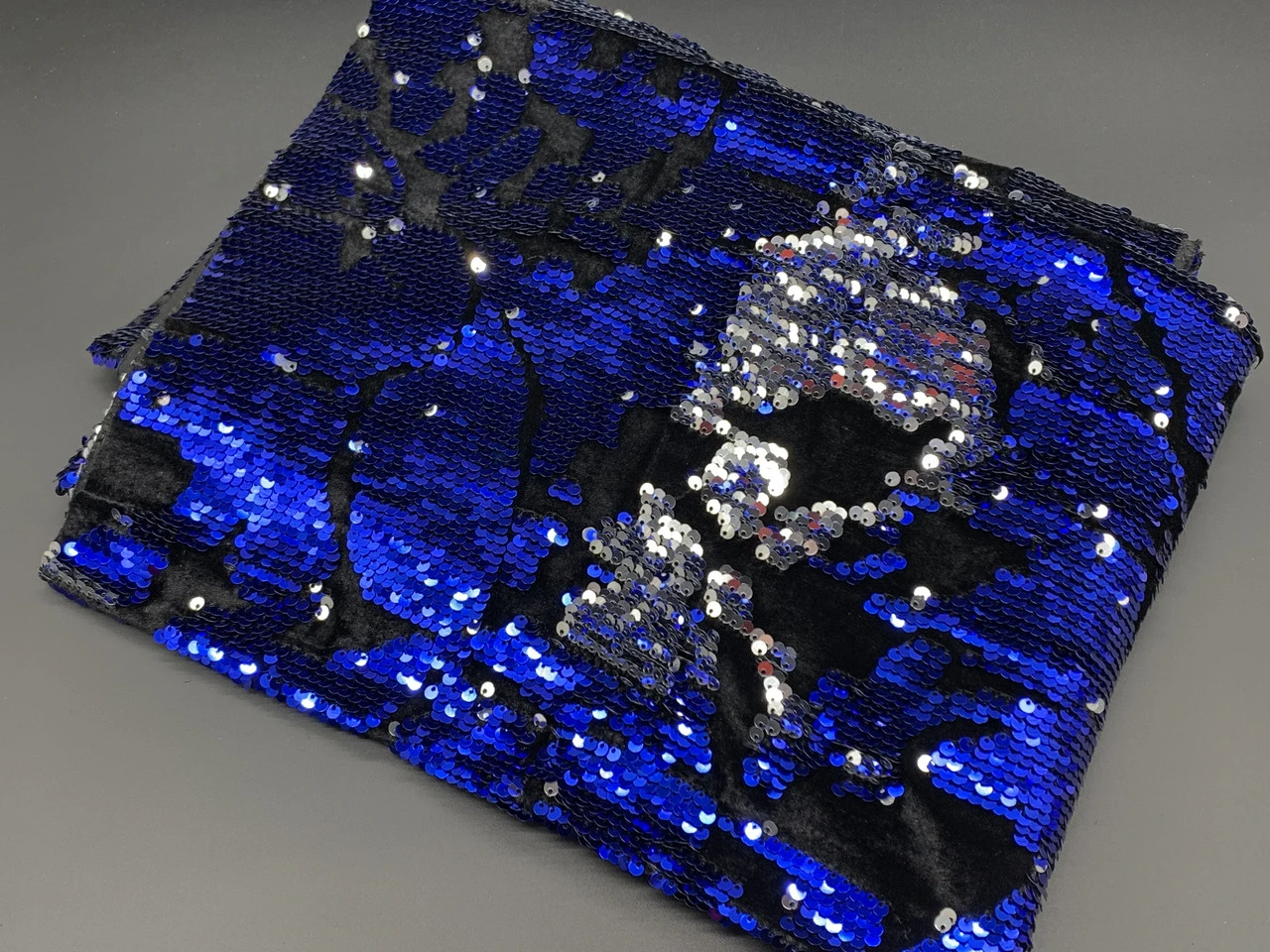 Ткань пайеточная, двусторонняя, Цвет «сине-серебристый»