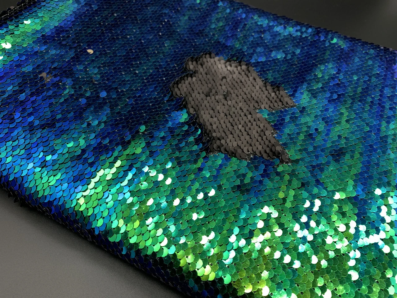Ткань пайеточная, двусторонняя, Цвет «сине-зелено-черный»